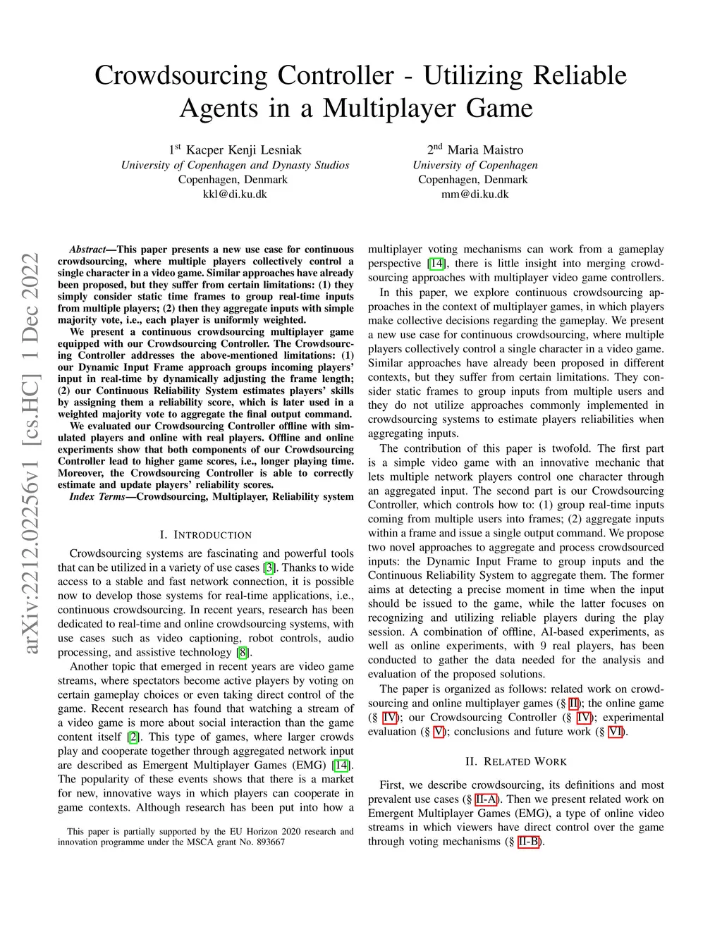 Crowdsourcing Controller -- Utilizing Reliable Agents in a Multiplayer