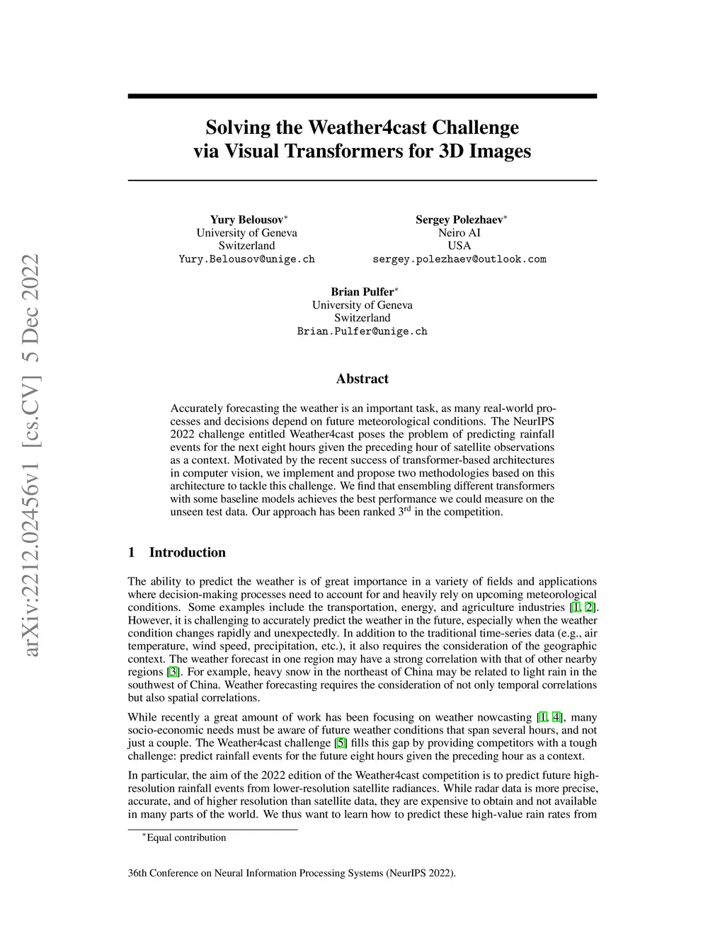 Solving the Weather4cast Challenge via Visual Transformers for 3D Images