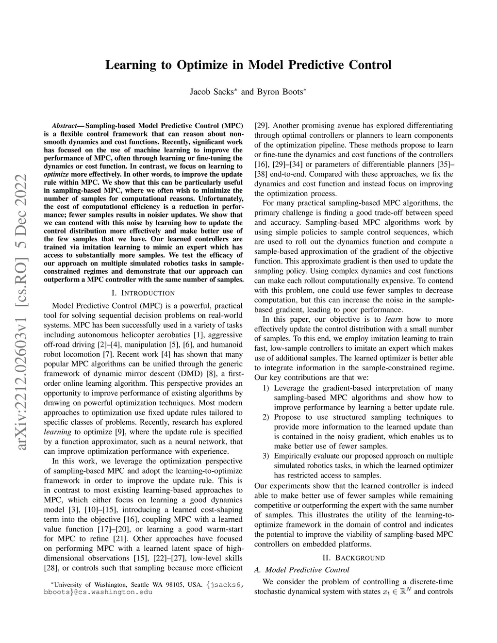 Sampling-based Model Predictive Control (MPC) is a flexible control framework that can reason about non-smooth dynamics and cost functions. Recently, significant work has focused on the use of machine learning to improve the performance of MPC, often through learning or fine-tuning the dynamics or cost function. In contrast, we focus on learning to optimize more effectively. In other words, to improve the update rule within MPC. We show that this can be particularly useful in sampling-based MPC, where we often wish to minimize the number of samples for computational reasons. Unfortunately, the cost of computational efficiency is a reduction in performance; fewer samples results in noisier updates. We show that we can contend with this noise by learning how to update the control distribution more effectively and make better use of the few samples that we have. Our learned controllers are trained via imitation learning to mimic an expert which has access to substantially more samples. We test the efficacy of our approach on multiple simulated robotics tasks in sample-constrained regimes and demonstrate that our approach can outperform a MPC controller with the same number of samples.