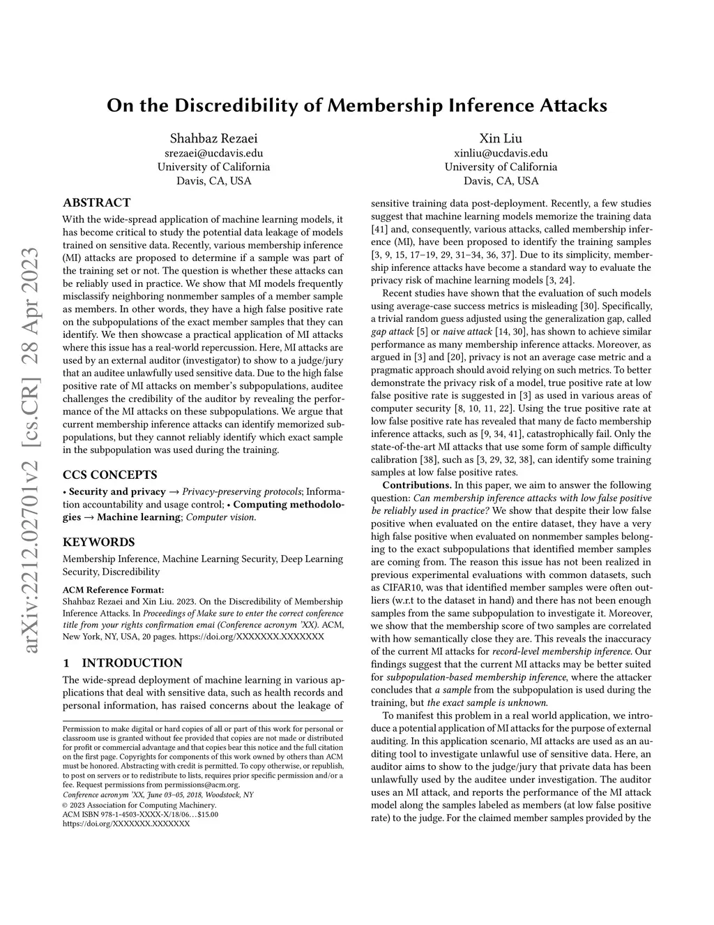 With the wide-spread application of machine learning models, it has become critical to study the potential data leakage of models trained on sensitive data. Recently, various membership inference (MI) attacks are proposed to determine if a sample was part of the training set or not. The question is whether these attacks can be reliably used in practice. We show that MI models frequently misclassify neighboring nonmember samples of a member sample as members. In other words, they have a high false positive rate on the subpopulations of the exact member samples that they can identify. We then showcase a practical application of MI attacks where this issue has a real-world repercussion. Here, MI attacks are used by an external auditor (investigator) to show to a judge/jury that an auditee unlawfully used sensitive data. Due to the high false positive rate of MI attacks on member's subpopulations, auditee challenges the credibility of the auditor by revealing the performance of the MI attacks on these subpopulations. We argue that current membership inference attacks can identify memorized subpopulations, but they cannot reliably identify which exact sample in the subpopulation was used during the training.