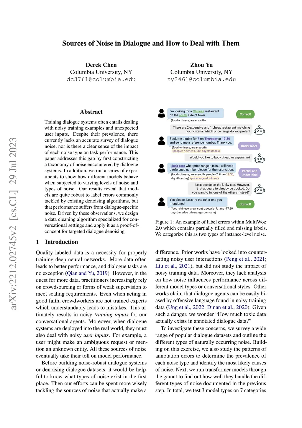 Sources of Noise in Dialogue and How to Deal with Them