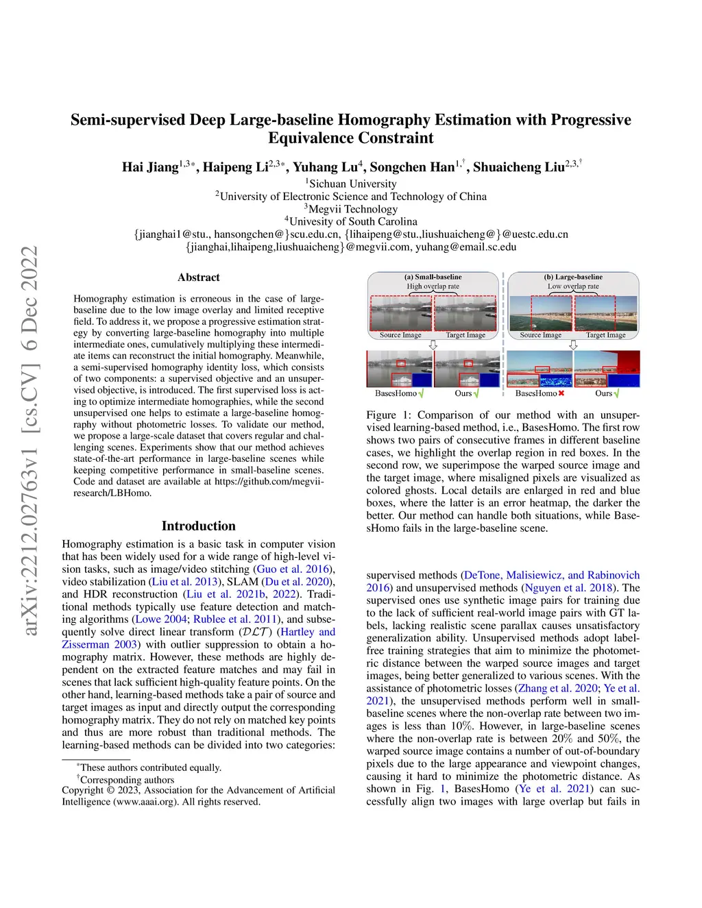 Semi-supervised Deep Large-baseline Homography Estimation with