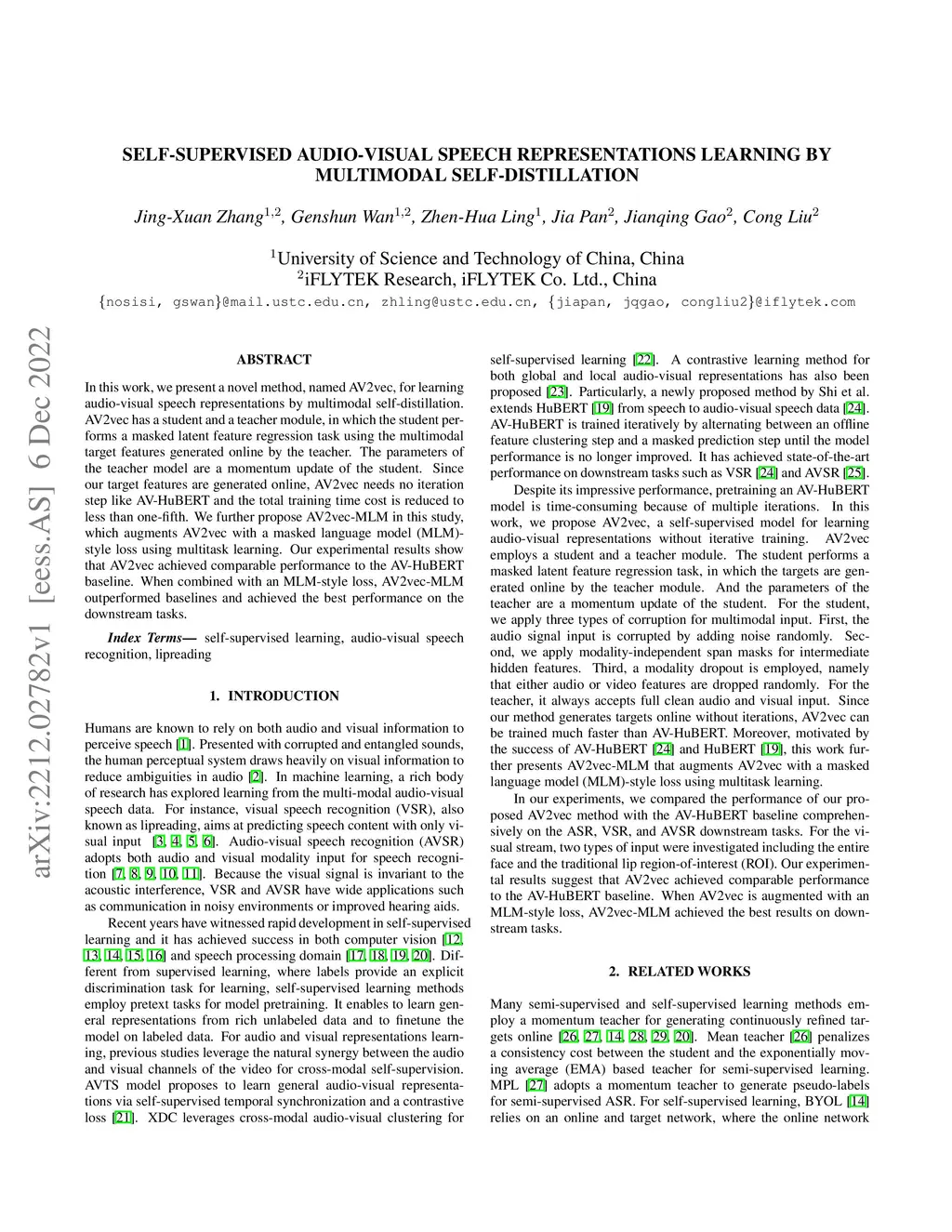 Self-Supervised Audio-Visual Speech Representations Learning By