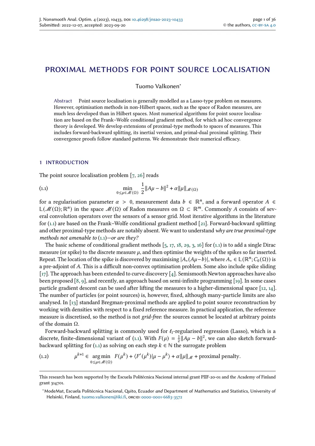 Proximal methods for point source localisation