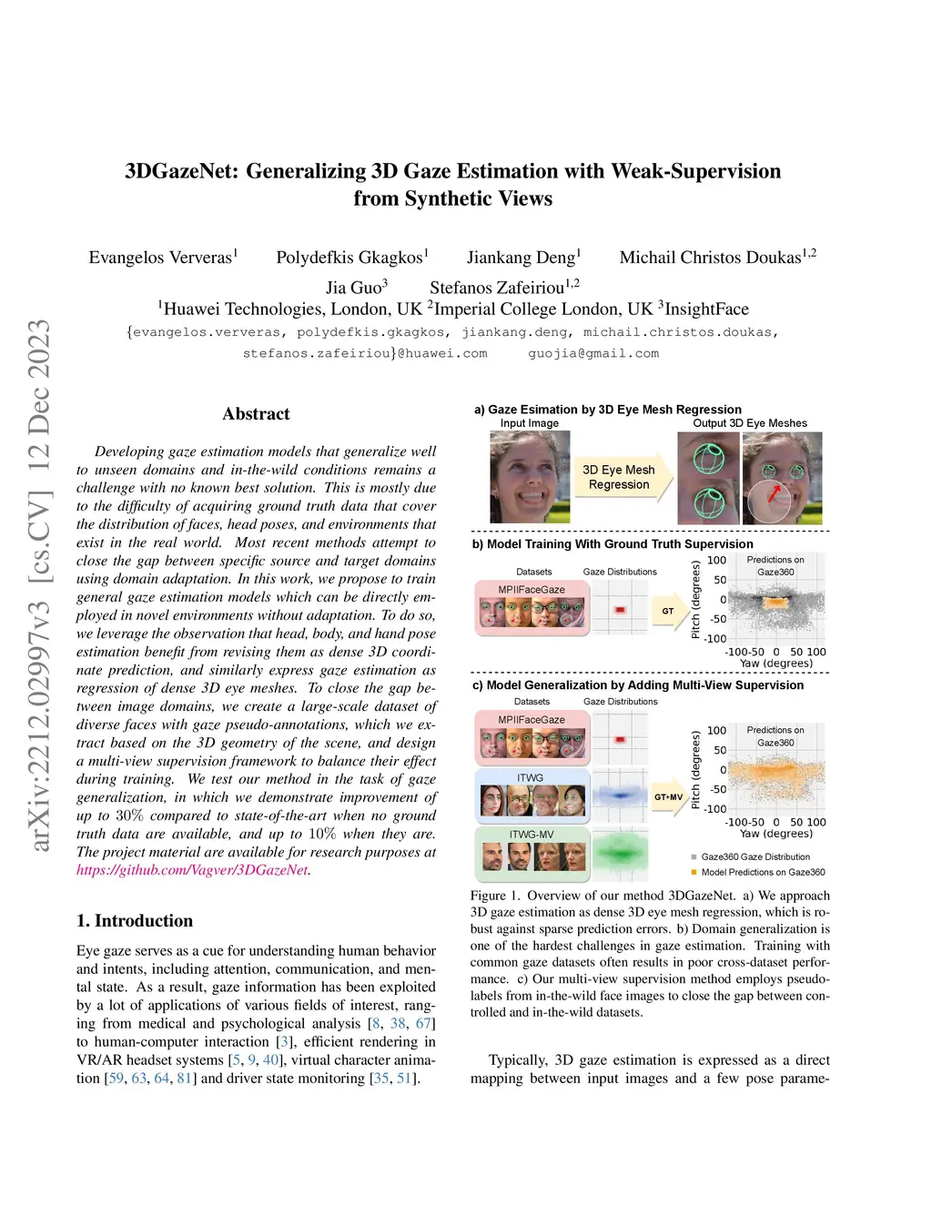 Developing gaze estimation models that generalize well to unseen domains and in-the-wild conditions remains a challenge with no known best solution. This is mostly due to the difficulty of acquiring ground truth data that cover the distribution of faces, head poses, and environments that exist in the real world. Most recent methods attempt to close the gap between specific source and target domains using domain adaptation. In this work, we propose to train general gaze estimation models which can be directly employed in novel environments without adaptation. To do so, we leverage the observation that head, body, and hand pose estimation benefit from revising them as dense 3D coordinate prediction, and similarly express gaze estimation as regression of dense 3D eye meshes. To close the gap between image domains, we create a large-scale dataset of diverse faces with gaze pseudo-annotations, which we extract based on the 3D geometry of the scene, and design a multi-view supervision framework to balance their effect during training. We test our method in the task of gaze generalization, in which we demonstrate improvement of up to 30% compared to state-of-the-art when no ground truth data are available, and up to 10% when they are. The project material are available for research purposes at https://github.com/Vagver/3DGazeNet.