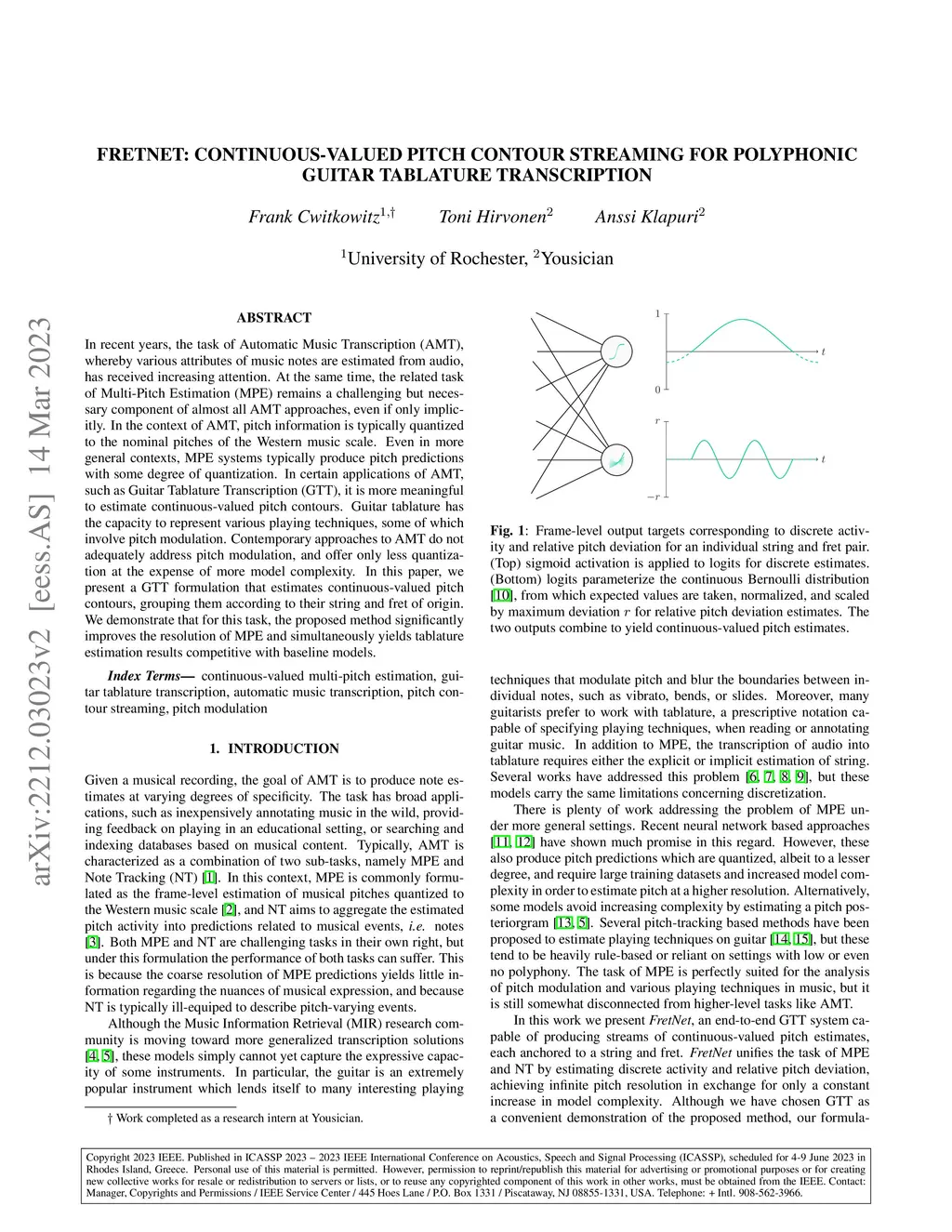 FretNet: Continuous-Valued Pitch Contour Streaming for Polyphonic Guitar
