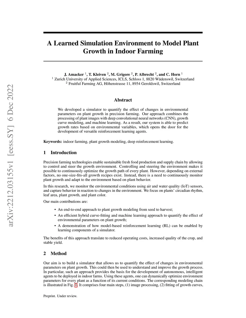 We developed a simulator to quantify the effect of changes in environmental parameters on plant growth in precision farming. Our approach combines the processing of plant images with deep convolutional neural networks (CNN), growth curve modeling, and machine learning. As a result, our system is able to predict growth rates based on environmental variables, which opens the door for the development of versatile reinforcement learning agents.