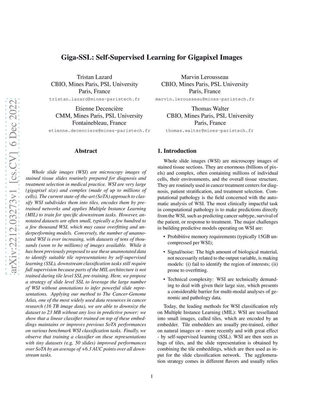 Giga-SSL: Self-Supervised Learning for Gigapixel Images