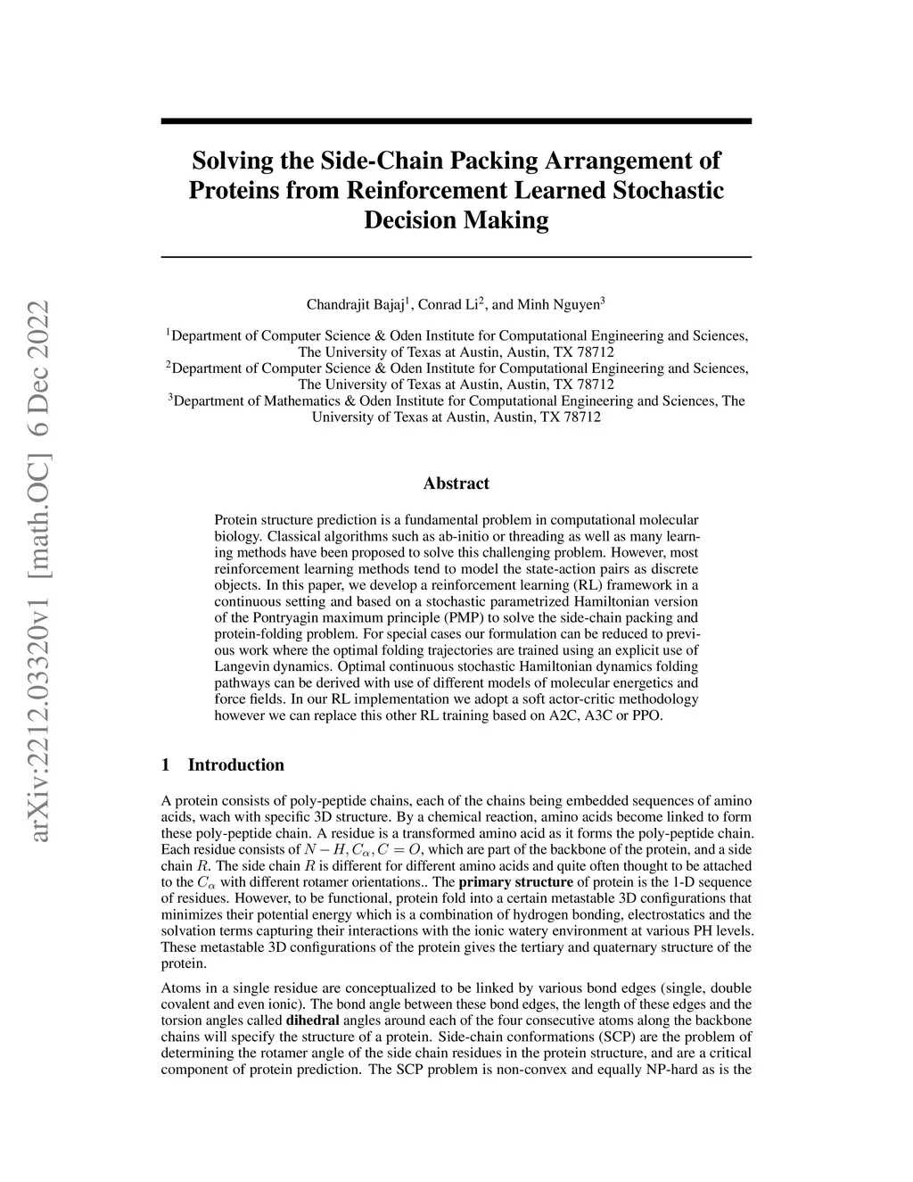 Protein structure prediction is a fundamental problem in computational molecular biology. Classical algorithms such as ab-initio or threading as well as many learning methods have been proposed to solve this challenging problem. However, most reinforcement learning methods tend to model the state-action pairs as discrete objects. In this paper, we develop a reinforcement learning (RL) framework in a continuous setting and based on a stochastic parametrized Hamiltonian version of the Pontryagin maximum principle (PMP) to solve the side-chain packing and protein-folding problem. For special cases our formulation can be reduced to previous work where the optimal folding trajectories are trained using an explicit use of Langevin dynamics. Optimal continuous stochastic Hamiltonian dynamics folding pathways can be derived with use of different models of molecular energetics and force fields. In our RL implementation we adopt a soft actor-critic methodology however we can replace this other RL training based on A2C, A3C or PPO.