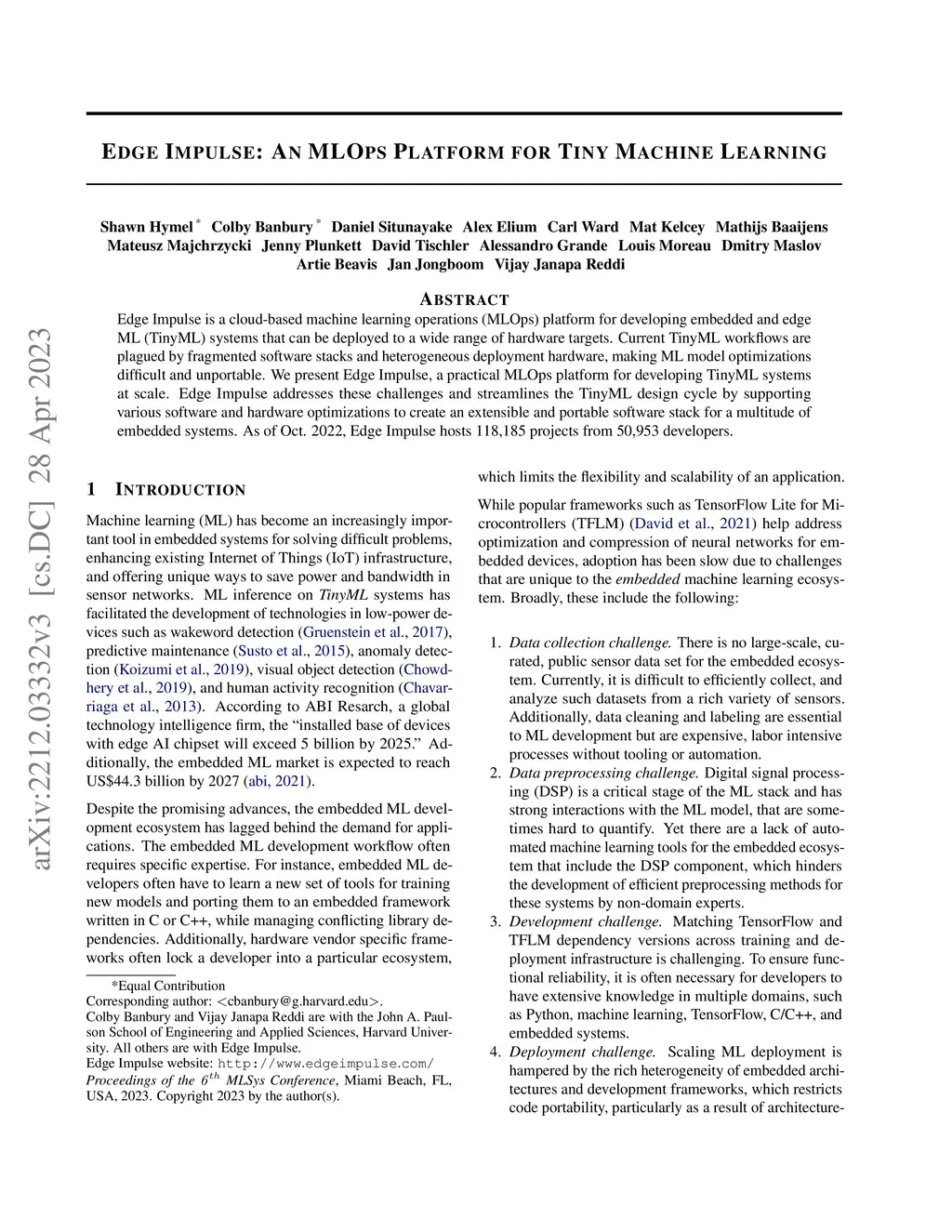 Edge Impulse: An MLOps Platform for Tiny Machine Learning