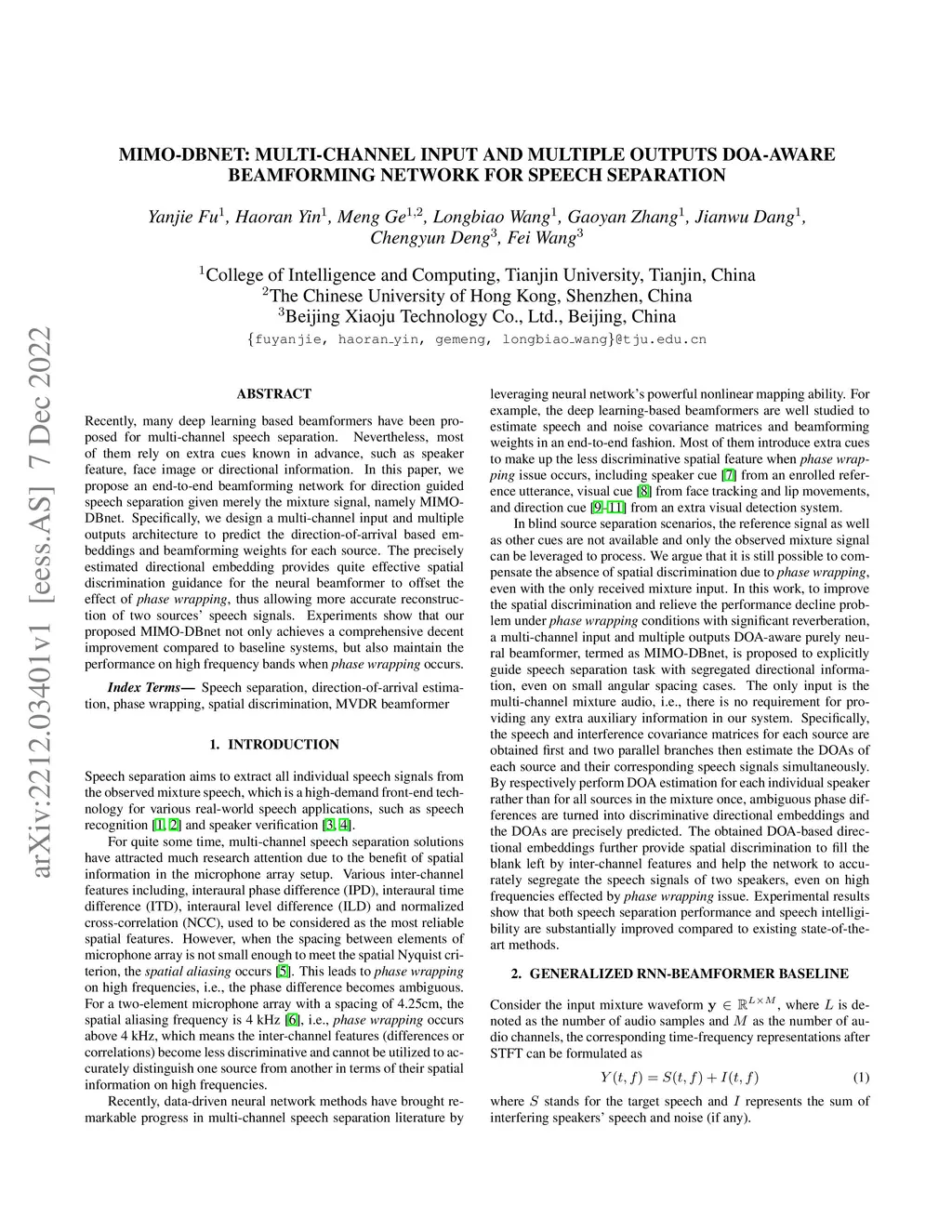 MIMO-DBnet: Multi-channel Input and Multiple Outputs DOA-aware