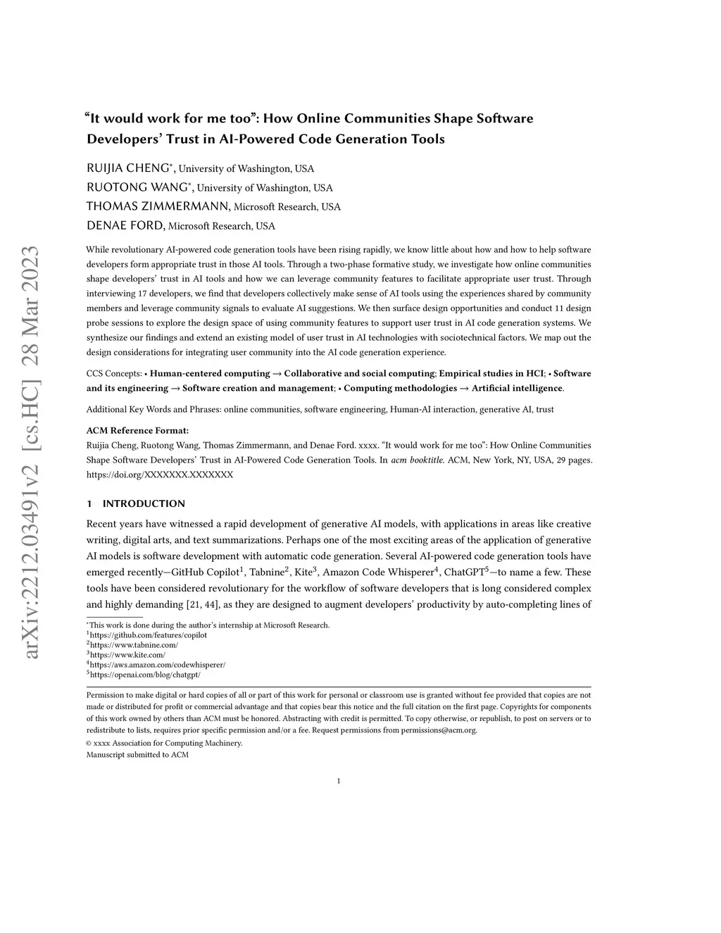 Developers' Trust in AI-Powered Code Generation Tools