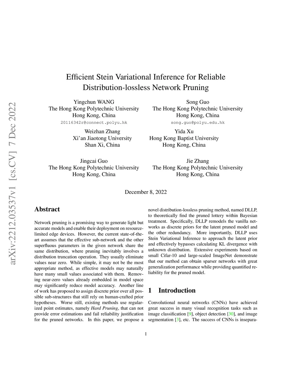 Network pruning is a promising way to generate light but accurate models and enable their deployment on resource-limited edge devices. However, the current state-of-the-art assumes that the effective sub-network and the other superfluous parameters in the given network share the same distribution, where pruning inevitably involves a distribution truncation operation. They usually eliminate values near zero. While simple, it may not be the most appropriate method, as effective models may naturally have many small values associated with them. Removing near-zero values already embedded in model space may significantly reduce model accuracy. Another line of work has proposed to assign discrete prior over all possible sub-structures that still rely on human-crafted prior hypotheses. Worse still, existing methods use regularized point estimates, namely Hard Pruning, that can not provide error estimations and fail reliability justification for the pruned networks. In this paper, we propose a novel distribution-lossless pruning method, named DLLP, to theoretically find the pruned lottery within Bayesian treatment. Specifically, DLLP remodels the vanilla networks as discrete priors for the latent pruned model and the other redundancy. More importantly, DLLP uses Stein Variational Inference to approach the latent prior and effectively bypasses calculating KL divergence with unknown distribution. Extensive experiments based on small Cifar-10 and large-scaled ImageNet demonstrate that our method can obtain sparser networks with great generalization performance while providing quantified reliability for the pruned model.