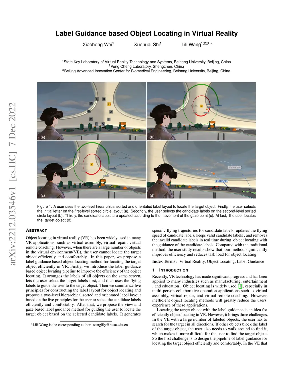 Label Guidance based Object Locating in Virtual Reality
