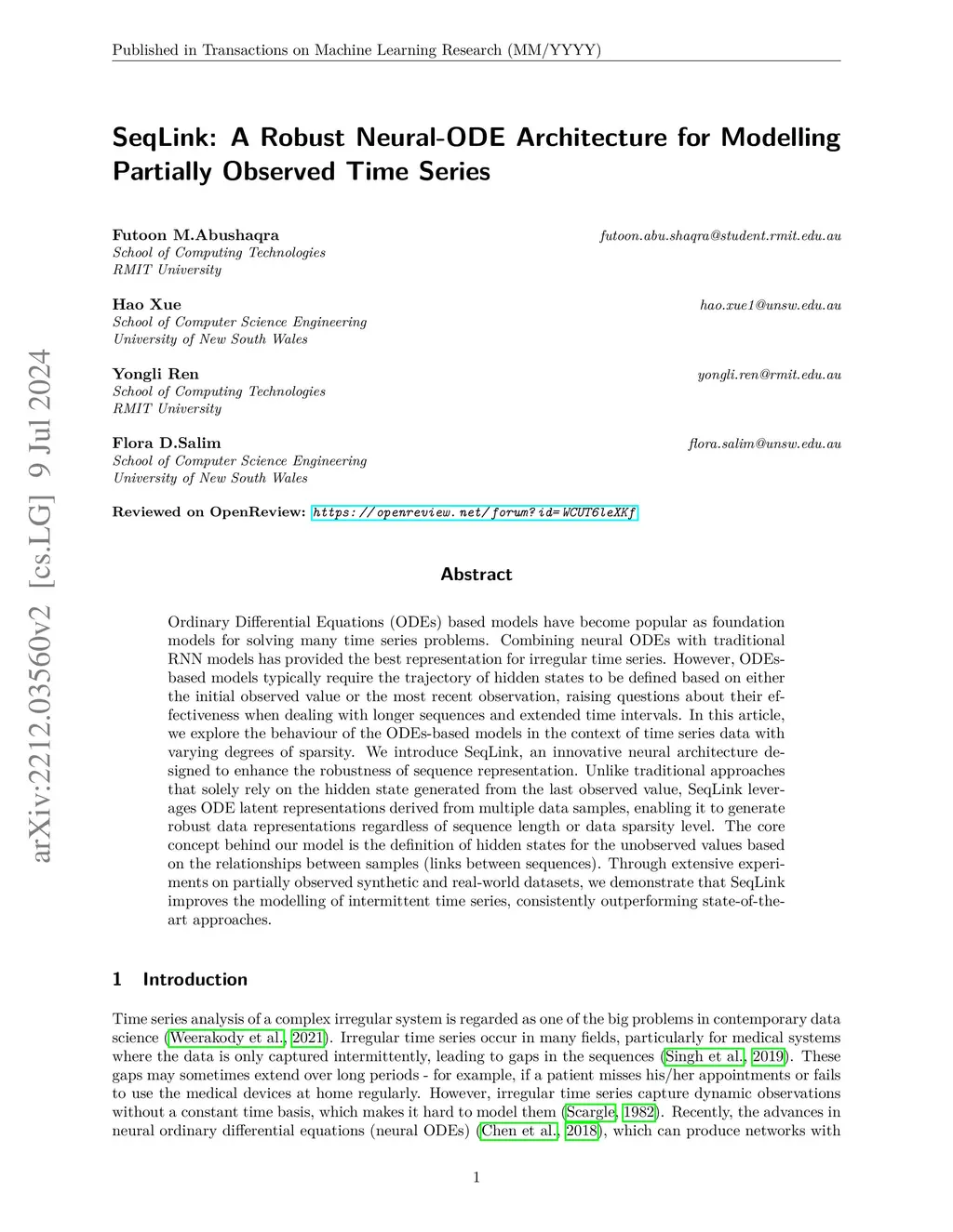 SeqLink: A Robust Neural-ODE Architecture for Modelling Partially