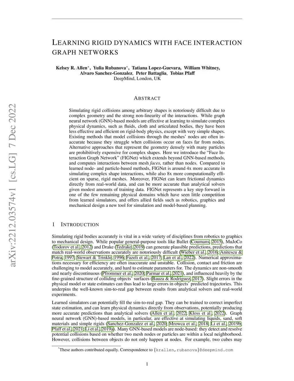 Learning rigid dynamics with face interaction graph networks