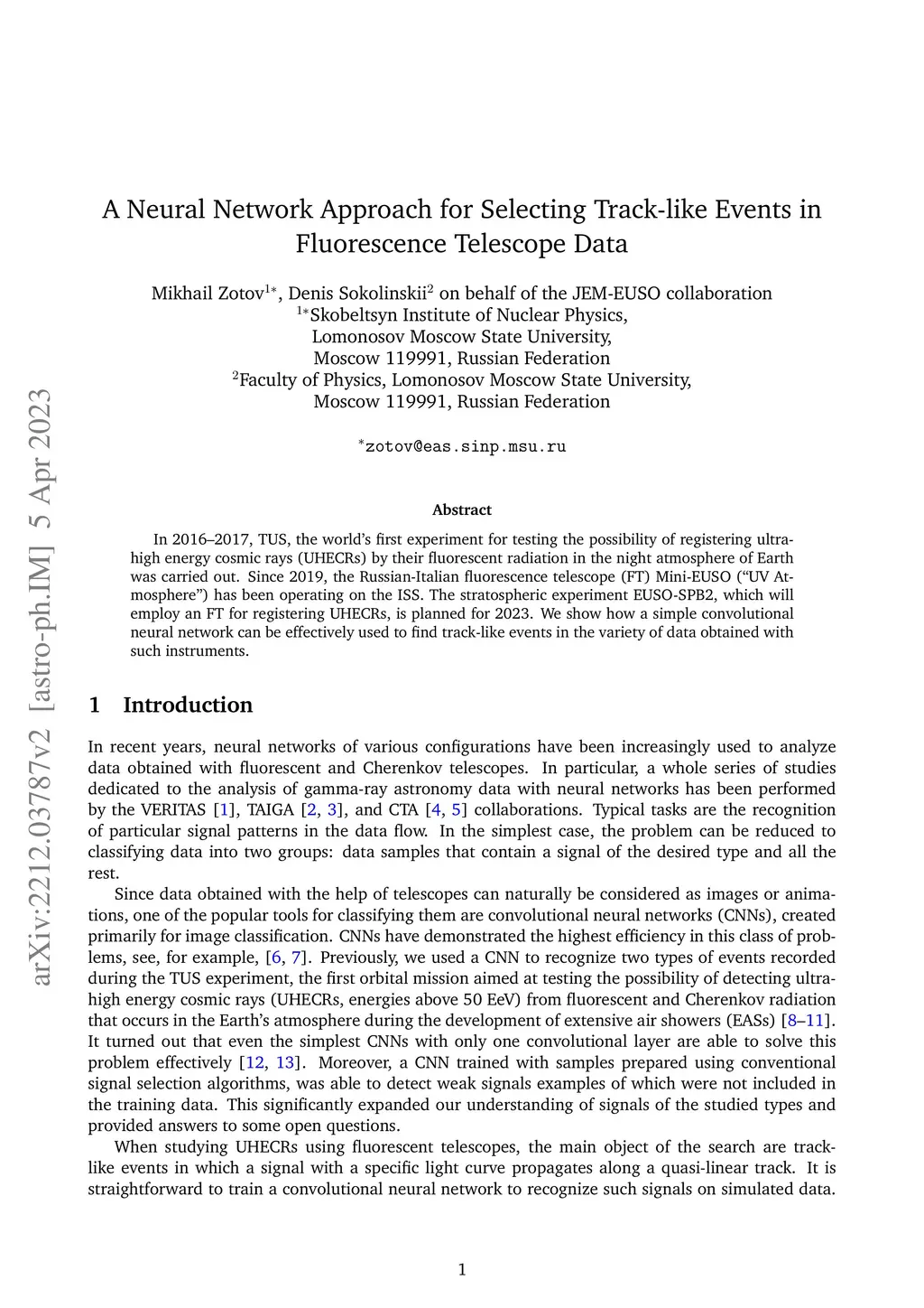 In 2016-2017, TUS, the world's first experiment for testing the possibility of registering ultra-high energy cosmic rays (UHECRs) by their fluorescent radiation in the night atmosphere of Earth was carried out. Since 2019, the Russian-Italian fluorescence telescope (FT) Mini-EUSO ("UV Atmosphere") has been operating on the ISS. The stratospheric experiment EUSO-SPB2, which will employ an FT for registering UHECRs, is planned for 2023. We show how a simple convolutional neural network can be effectively used to find track-like events in the variety of data obtained with such instruments.