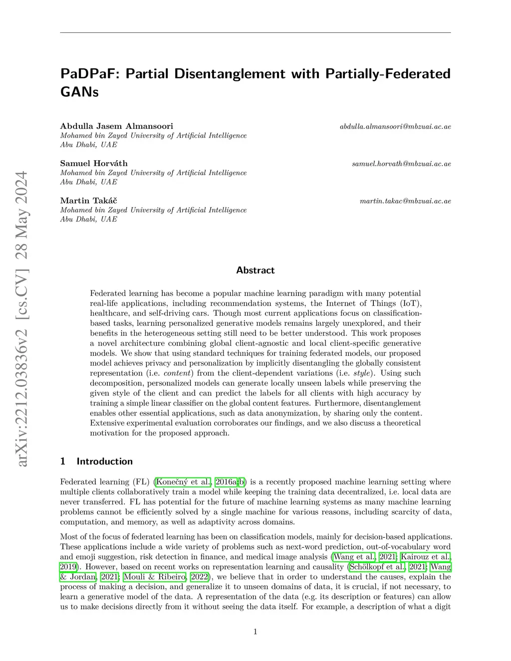 PaDPaF: Partial Disentanglement with Partially-Federated GANs
