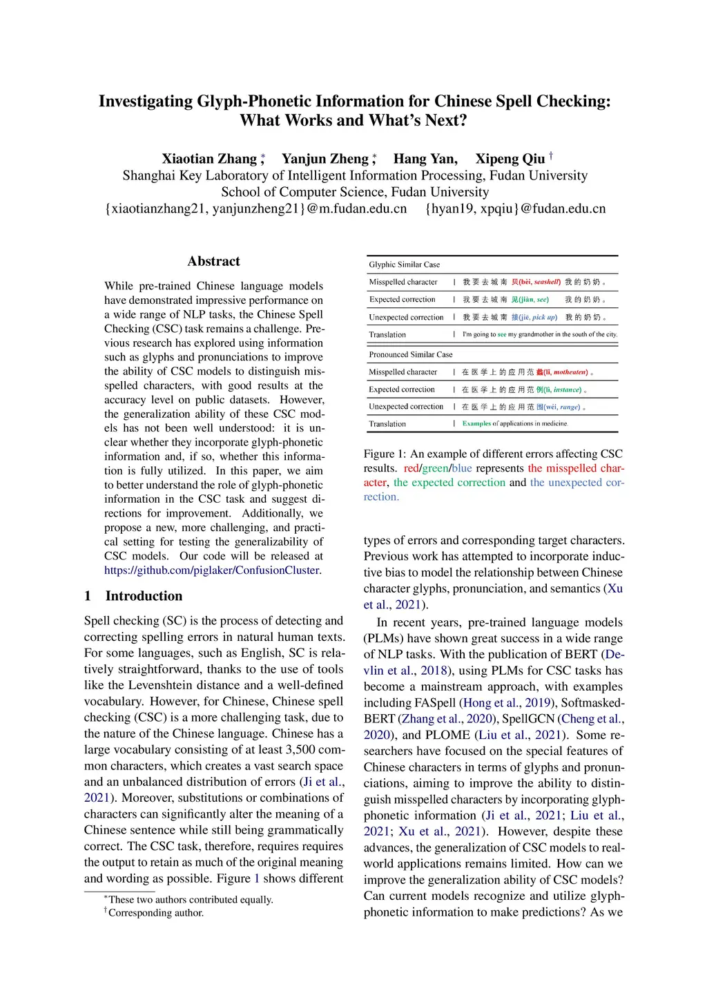 Investigating Glyph Phonetic Information for Chinese Spell Checking: