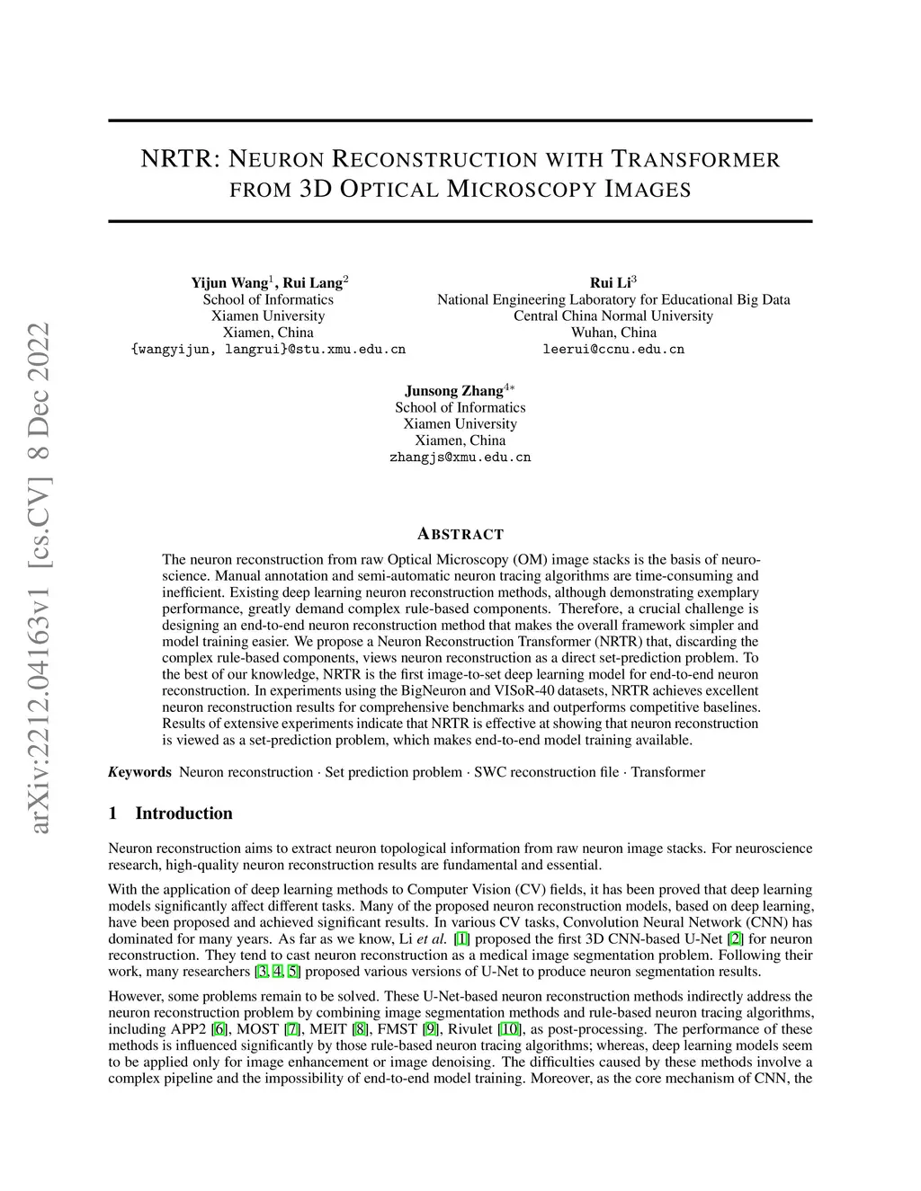 NRTR: Neuron Reconstruction with Transformer from 3D Optical Microscopy
