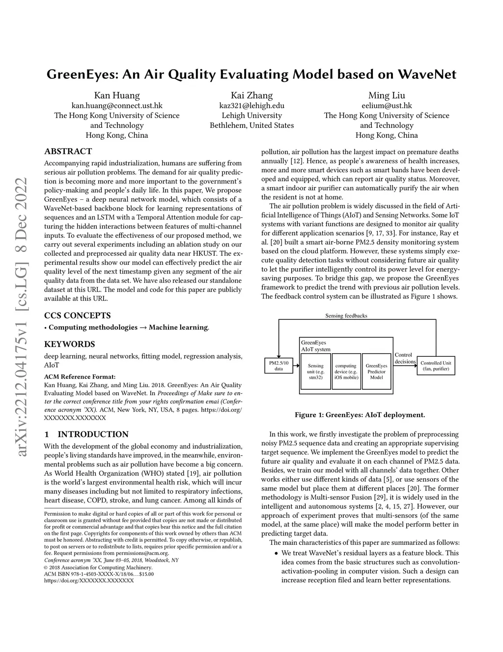 GreenEyes: An Air Quality Evaluating Model based on WaveNet