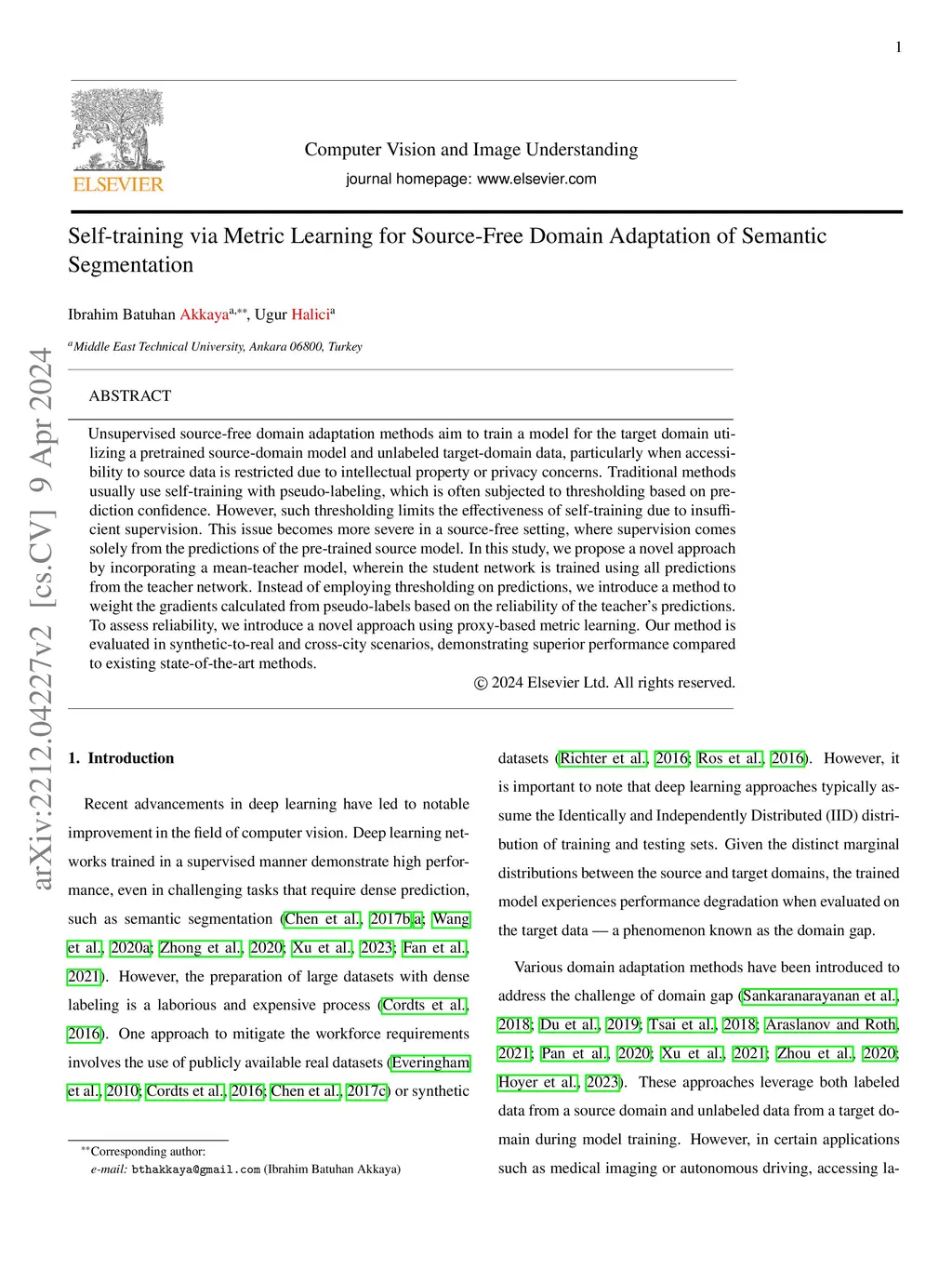 Unsupervised source-free domain adaptation methods aim to train a model for the target domain utilizing a pretrained source-domain model and unlabeled target-domain data, particularly when accessibility to source data is restricted due to intellectual property or privacy concerns. Traditional methods usually use self-training with pseudo-labeling, which is often subjected to thresholding based on prediction confidence. However, such thresholding limits the effectiveness of self-training due to insufficient supervision. This issue becomes more severe in a source-free setting, where supervision comes solely from the predictions of the pre-trained source model. In this study, we propose a novel approach by incorporating a mean-teacher model, wherein the student network is trained using all predictions from the teacher network. Instead of employing thresholding on predictions, we introduce a method to weight the gradients calculated from pseudo-labels based on the reliability of the teacher's predictions. To assess reliability, we introduce a novel approach using proxy-based metric learning. Our method is evaluated in synthetic-to-real and cross-city scenarios, demonstrating superior performance compared to existing state-of-the-art methods.