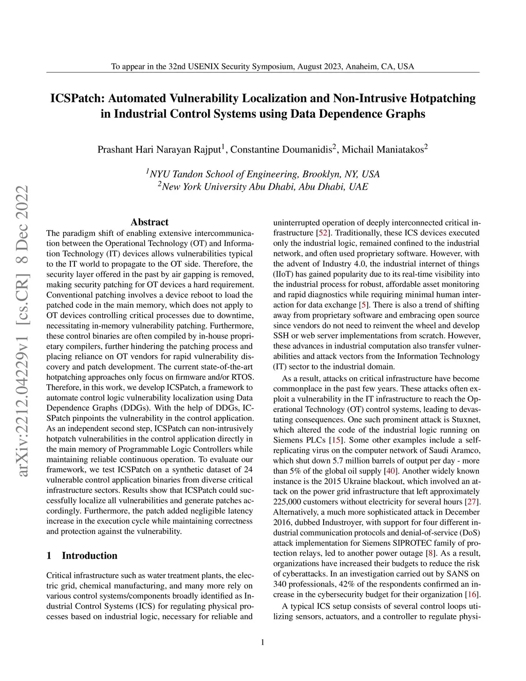 ICSPatch: Automated Vulnerability Localization and Non-Intrusive