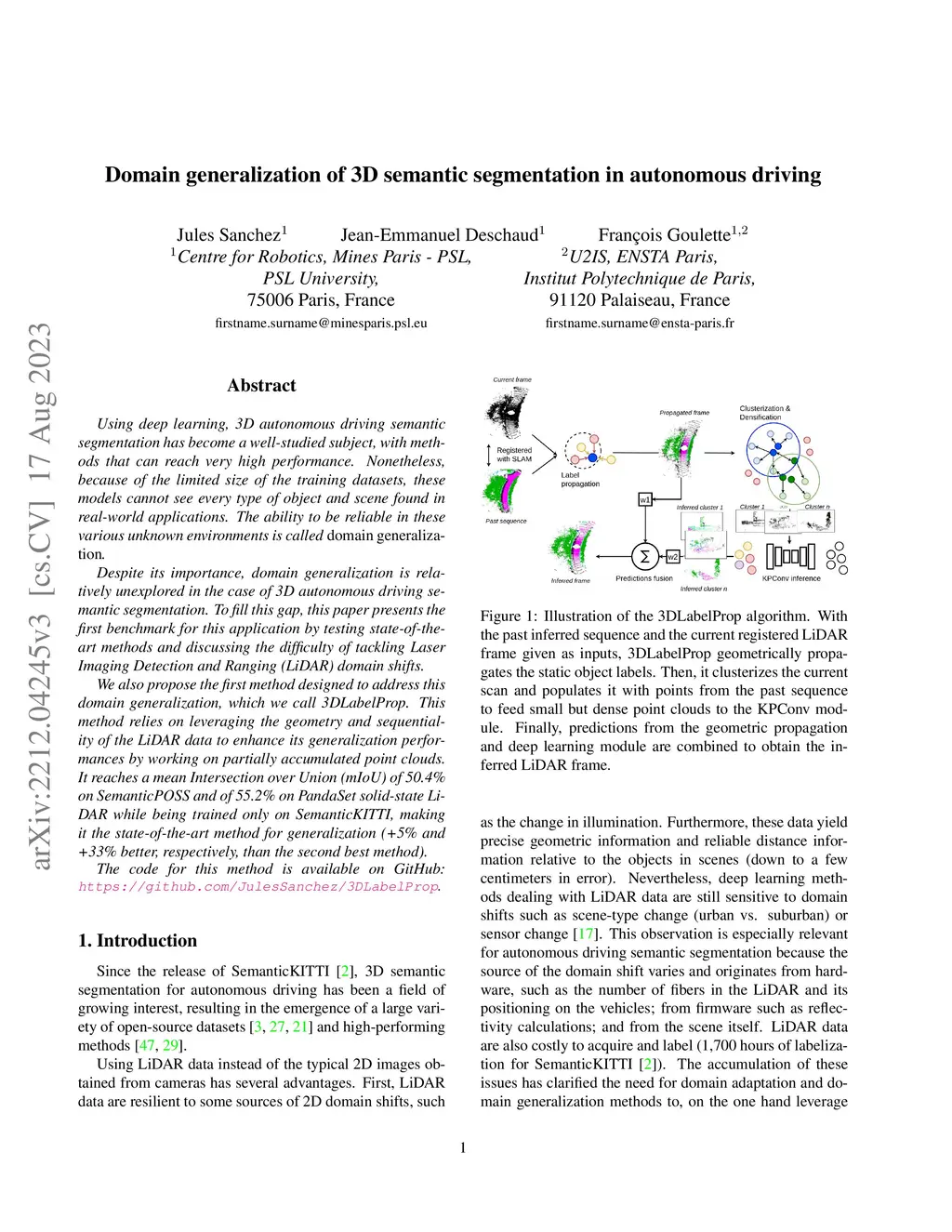 Domain generalization of 3D semantic segmentation in autonomous driving
