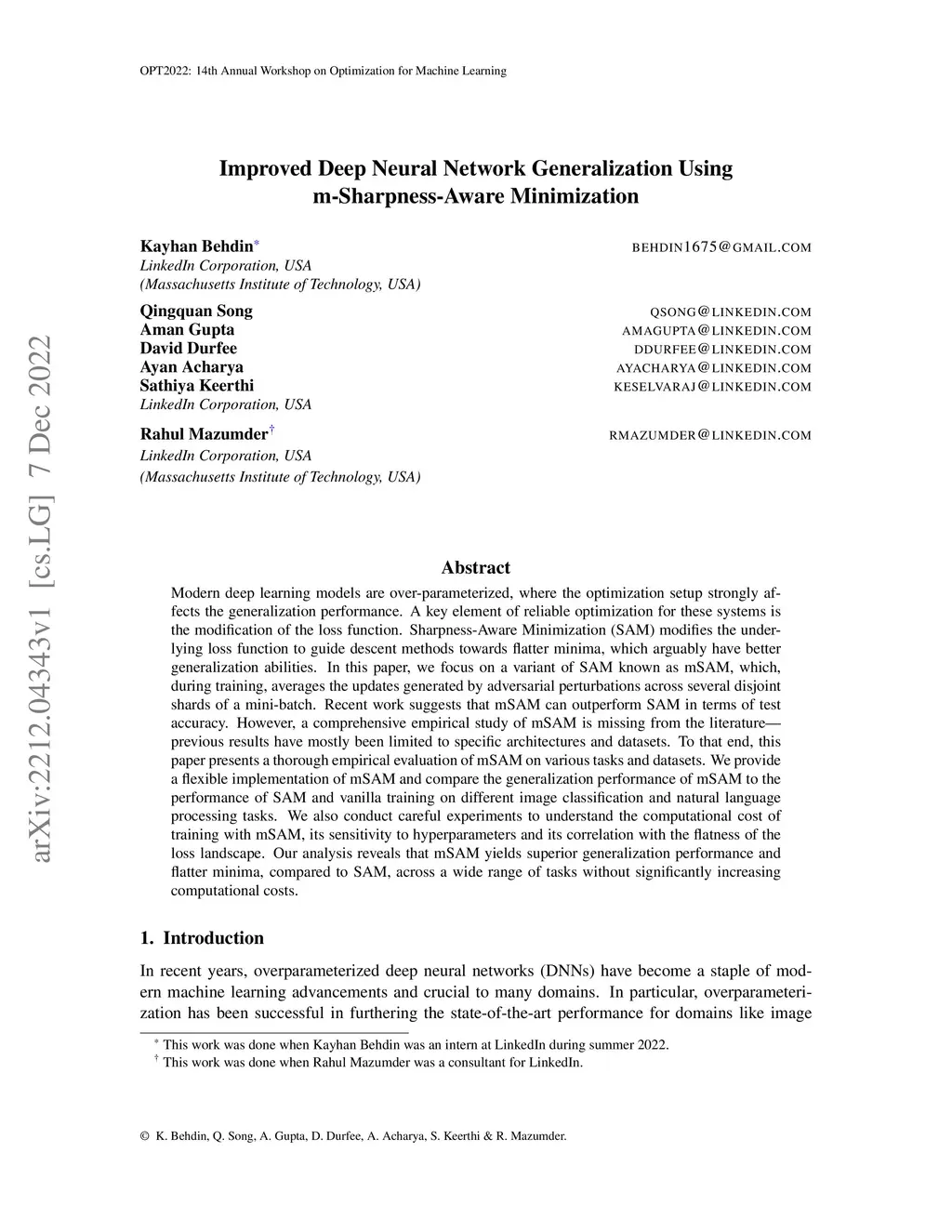 Improved Deep Neural Network Generalization Using m-Sharpness-Aware