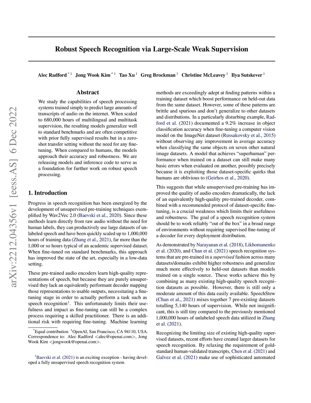 Robust Speech Recognition via Large-Scale Weak Supervision