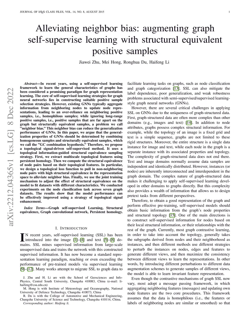 In recent years, using a self-supervised learning framework to learn the general characteristics of graphs has been considered a promising paradigm for graph representation learning. The core of self-supervised learning strategies for graph neural networks lies in constructing suitable positive sample selection strategies. However, existing GNNs typically aggregate information from neighboring nodes to update node representations, leading to an over-reliance on neighboring positive samples, i.e., homophilous samples; while ignoring long-range positive samples, i.e., positive samples that are far apart on the graph but structurally equivalent samples, a problem we call "neighbor bias." This neighbor bias can reduce the generalization performance of GNNs. In this paper, we argue that the generalization properties of GNNs should be determined by combining homogeneous samples and structurally equivalent samples, which we call the "GC combination hypothesis." Therefore, we propose a topological signal-driven self-supervised method. It uses a topological information-guided structural equivalence sampling strategy. First, we extract multiscale topological features using persistent homology. Then we compute the structural equivalence of node pairs based on their topological features. In particular, we design a topological loss function to pull in non-neighboring node pairs with high structural equivalence in the representation space to alleviate neighbor bias. Finally, we use the joint training mechanism to adjust the effect of structural equivalence on the model to fit datasets with different characteristics. We conducted experiments on the node classification task across seven graph datasets. The results show that the model performance can be effectively improved using a strategy of topological signal enhancement.