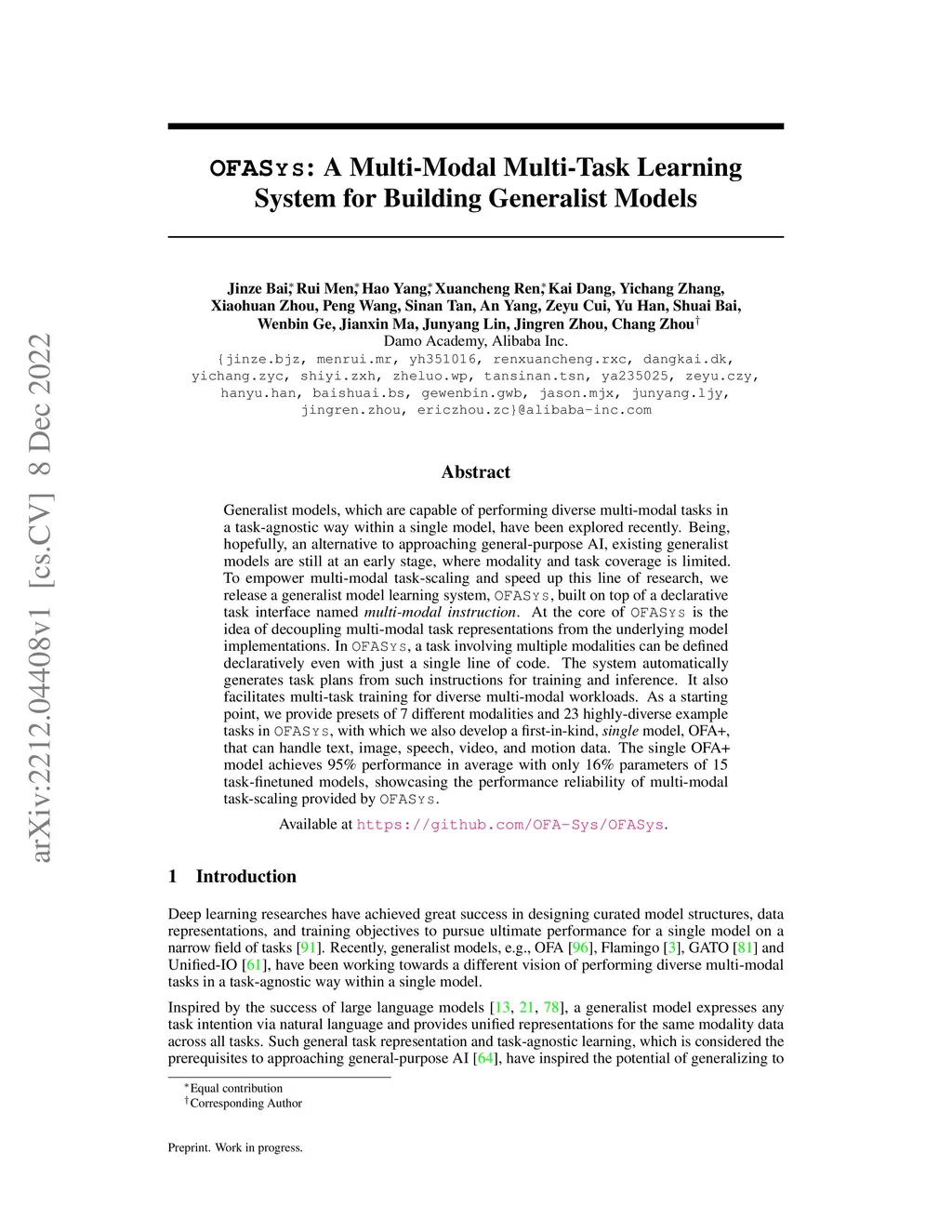OFASys: A Multi-Modal Multi-Task Learning System for Building Generalist