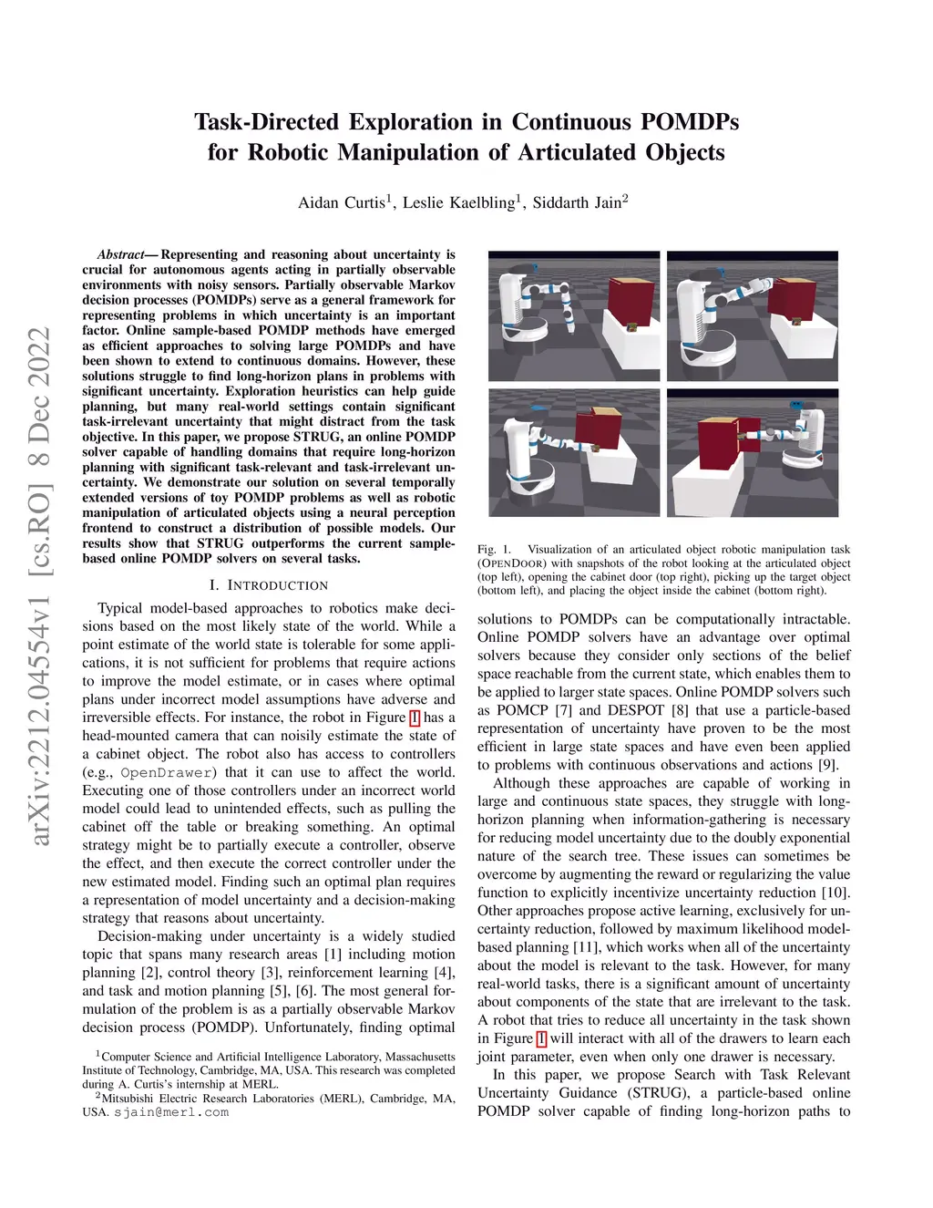 Representing and reasoning about uncertainty is crucial for autonomous agents acting in partially observable environments with noisy sensors. Partially observable Markov decision processes (POMDPs) serve as a general framework for representing problems in which uncertainty is an important factor. Online sample-based POMDP methods have emerged as efficient approaches to solving large POMDPs and have been shown to extend to continuous domains. However, these solutions struggle to find long-horizon plans in problems with significant uncertainty. Exploration heuristics can help guide planning, but many real-world settings contain significant task-irrelevant uncertainty that might distract from the task objective. In this paper, we propose STRUG, an online POMDP solver capable of handling domains that require long-horizon planning with significant task-relevant and task-irrelevant uncertainty. We demonstrate our solution on several temporally extended versions of toy POMDP problems as well as robotic manipulation of articulated objects using a neural perception frontend to construct a distribution of possible models. Our results show that STRUG outperforms the current sample-based online POMDP solvers on several tasks.