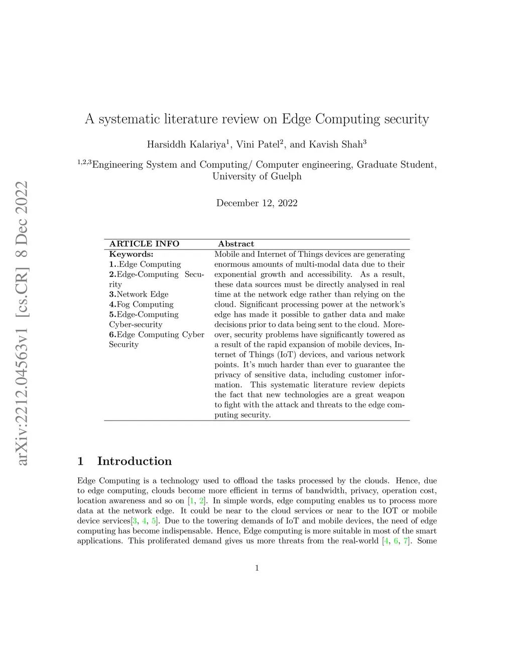 Mobile and Internet of Things devices are generating enormous amounts of multi-modal data due to their exponential growth and accessibility. As a result, these data sources must be directly analyzed in real time at the network edge rather than relying on the cloud. Significant processing power at the network's edge has made it possible to gather data and make decisions prior to data being sent to the cloud. Moreover, security problems have significantly towered as a result of the rapid expansion of mobile devices, Internet of Things (IoT) devices, and various network points. It's much harder than ever to guarantee the privacy of sensitive data, including customer information. This systematic literature review depicts the fact that new technologies are a great weapon to fight with the attack and threats to the edge computing security.