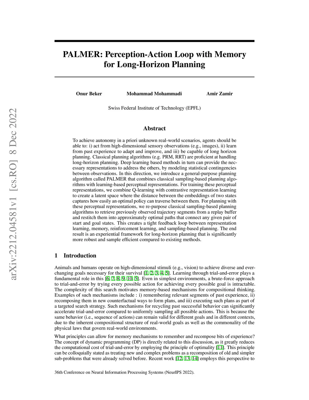 PALMER: Perception-Action Loop with Memory for Long-Horizon Planning