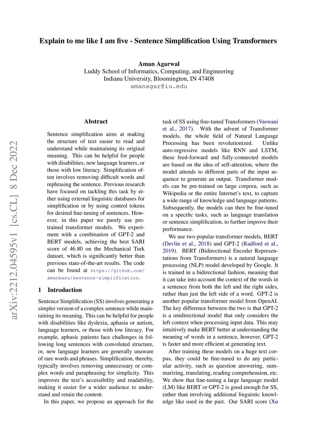 Sentence simplification aims at making the structure of text easier to read and understand while maintaining its original meaning. This can be helpful for people with disabilities, new language learners, or those with low literacy. Simplification often involves removing difficult words and rephrasing the sentence. Previous research have focused on tackling this task by either using external linguistic databases for simplification or by using control tokens for desired fine-tuning of sentences. However, in this paper we purely use pre-trained transformer models. We experiment with a combination of GPT-2 and BERT models, achieving the best SARI score of 46.80 on the Mechanical Turk dataset, which is significantly better than previous state-of-the-art results. The code can be found at https://github.com/amanbasu/sentence-simplification.