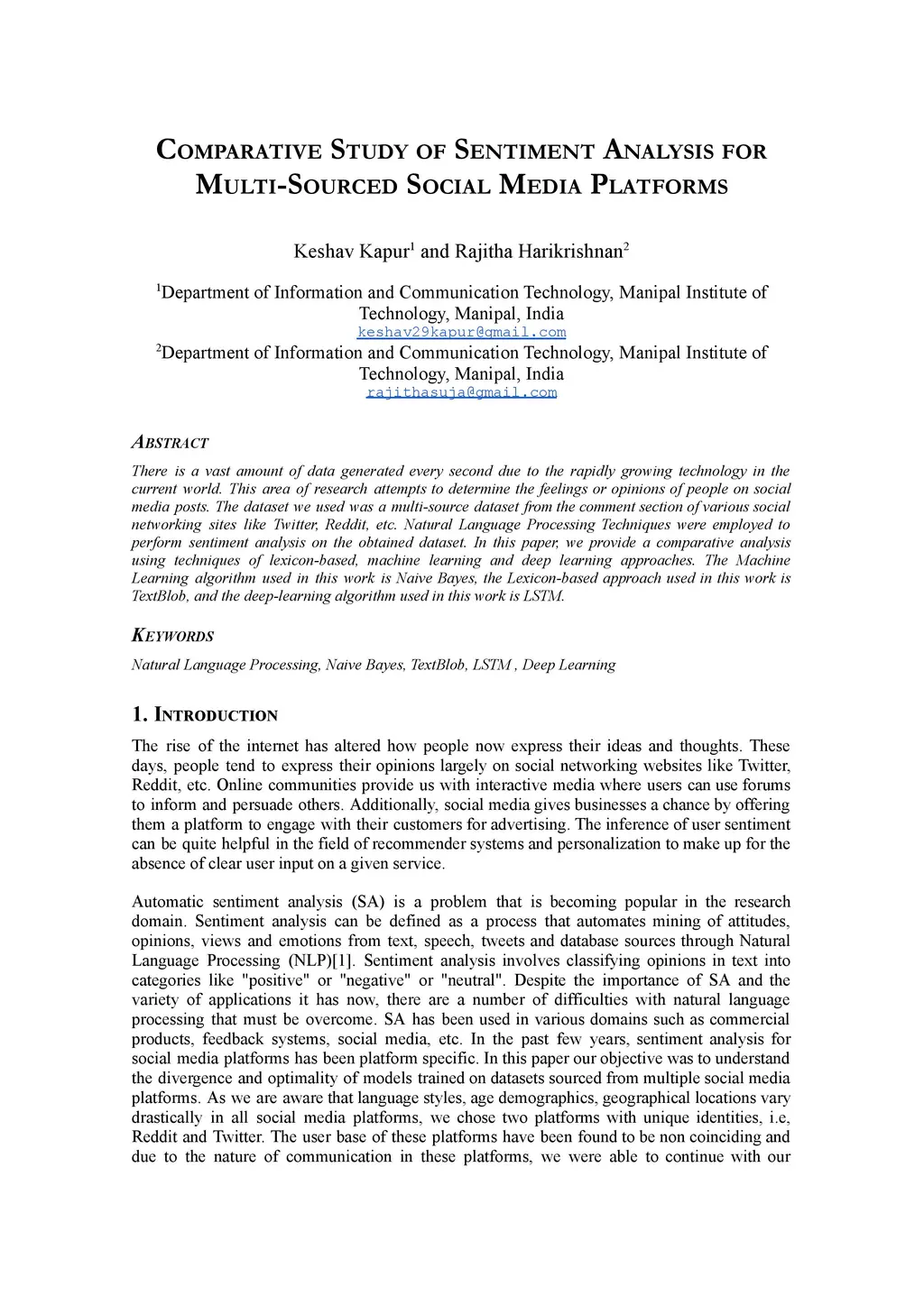 Comparative Study of Sentiment Analysis for Multi-Sourced Social Media