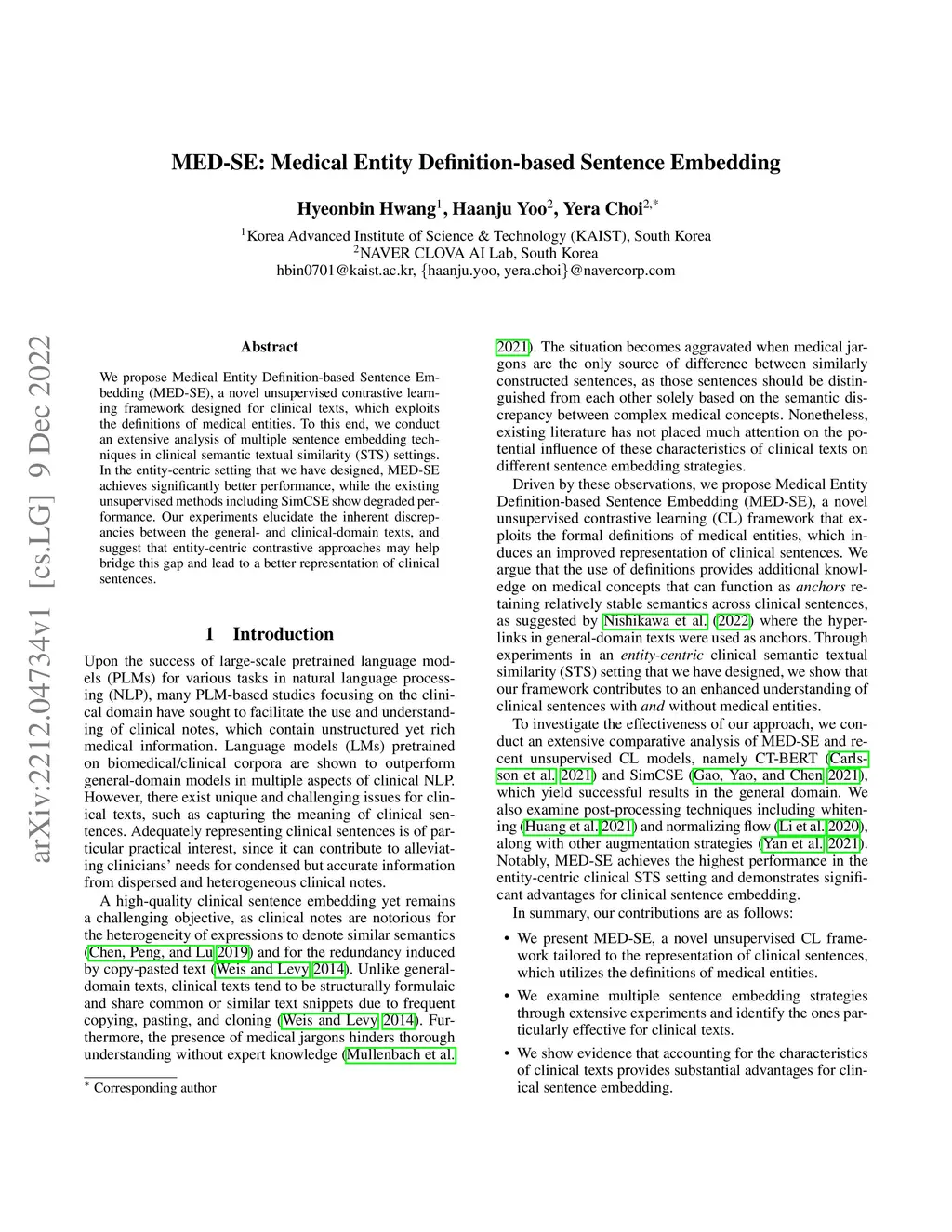 MED-SE: Medical Entity Definition-based Sentence Embedding