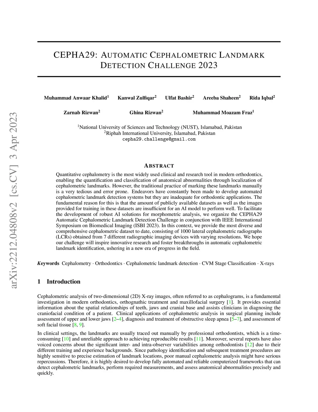 Quantitative cephalometric analysis is the most widely used clinical and research tool in modern orthodontics. Accurate localization of cephalometric landmarks enables the quantification and classification of anatomical abnormalities, however, the traditional manual way of marking these landmarks is a very tedious job. Endeavours have constantly been made to develop automated cephalometric landmark detection systems but they are inadequate for orthodontic applications. The fundamental reason for this is that the amount of publicly available datasets as well as the images provided for training in these datasets are insufficient for an AI model to perform well. To facilitate the development of robust AI solutions for morphometric analysis, we organise the CEPHA29 Automatic Cephalometric Landmark Detection Challenge in conjunction with IEEE International Symposium on Biomedical Imaging (ISBI 2023). In this context, we provide the largest known publicly available dataset, consisting of 1000 cephalometric X-ray images. We hope that our challenge will not only derive forward research and innovation in automatic cephalometric landmark identification but will also signal the beginning of a new era in the discipline.