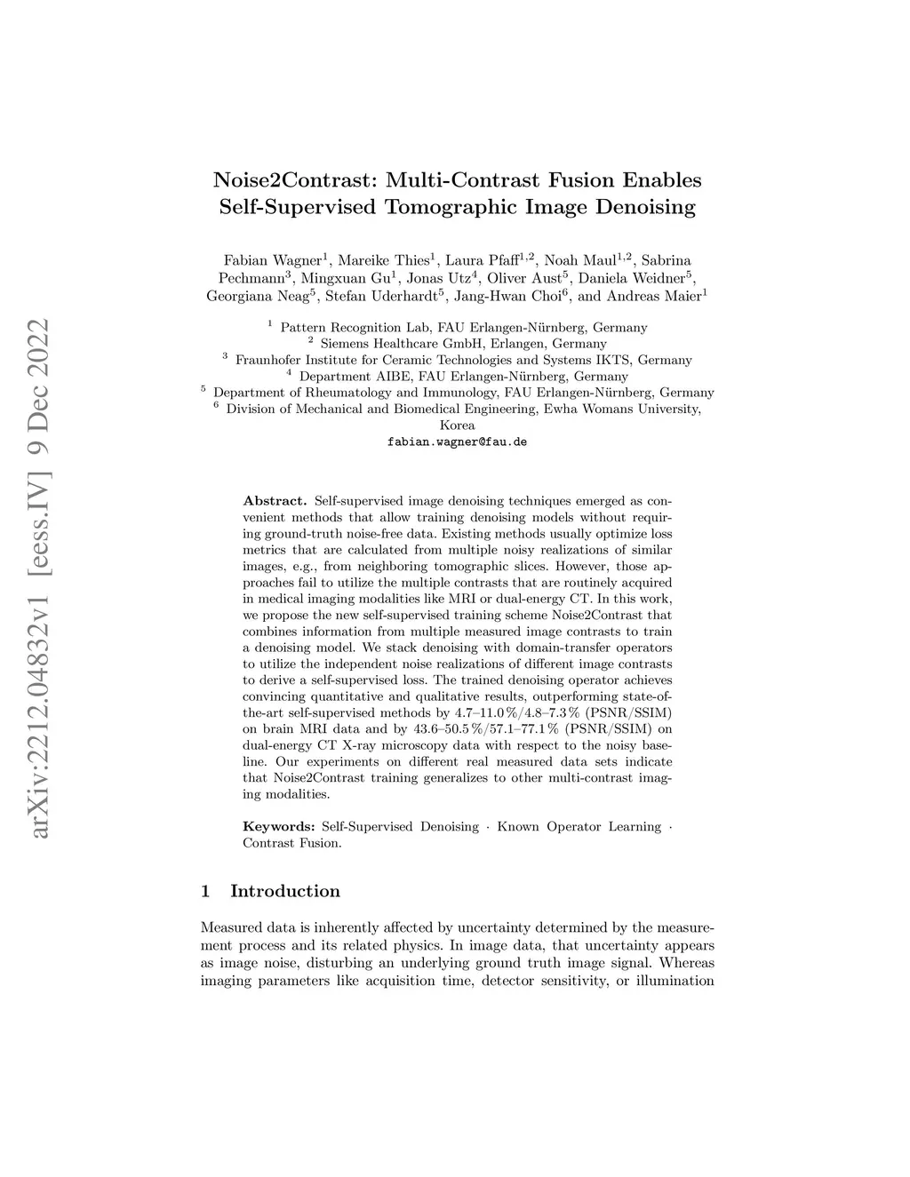 Noise2Contrast: Multi-Contrast Fusion Enables Self-Supervised