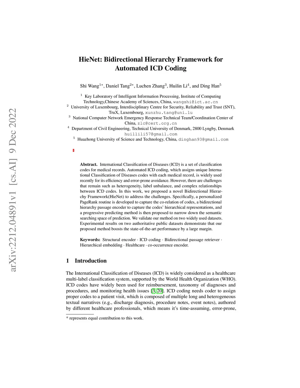 HieNet: Bidirectional Hierarchy Framework for Automated ICD Coding