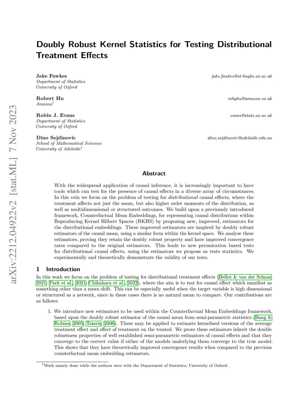 Doubly Robust Kernel Statistics for Testing Distributional Treatment