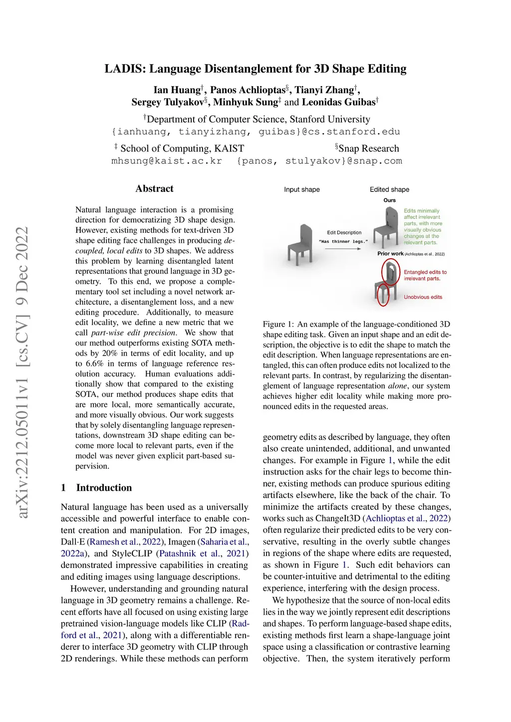 Natural language interaction is a promising direction for democratizing 3D shape design. However, existing methods for text-driven 3D shape editing face challenges in producing decoupled, local edits to 3D shapes. We address this problem by learning disentangled latent representations that ground language in 3D geometry. To this end, we propose a complementary tool set including a novel network architecture, a disentanglement loss, and a new editing procedure. Additionally, to measure edit locality, we define a new metric that we call part-wise edit precision. We show that our method outperforms existing SOTA methods by 20% in terms of edit locality, and up to 6.6% in terms of language reference resolution accuracy. Our work suggests that by solely disentangling language representations, downstream 3D shape editing can become more local to relevant parts, even if the model was never given explicit part-based supervision.