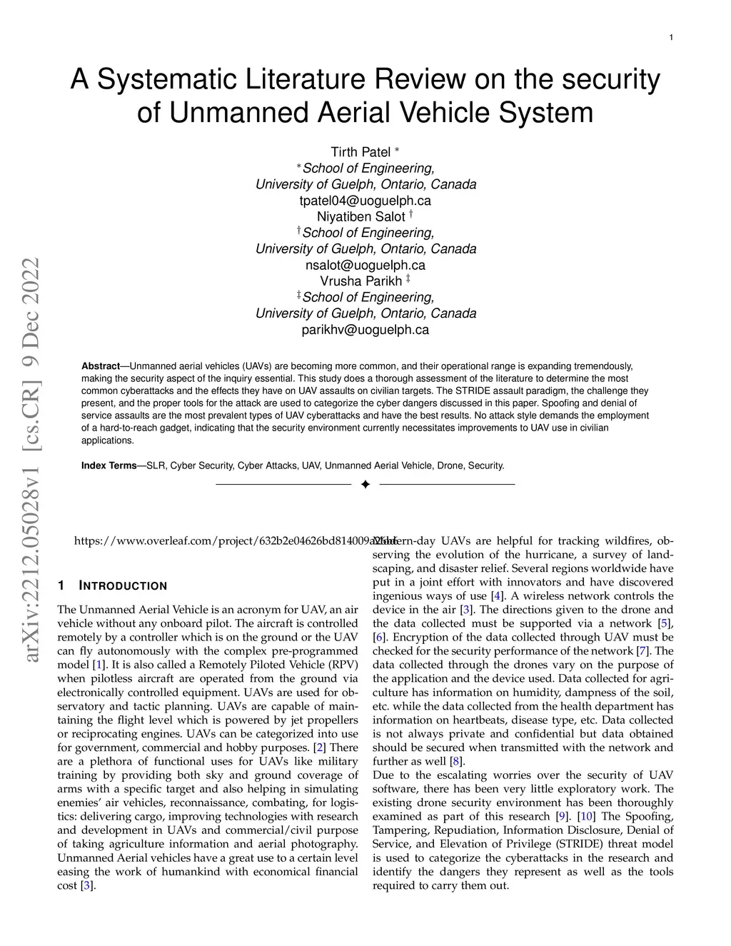 A systematic literature review on Security of Unmanned Aerial Vehicle