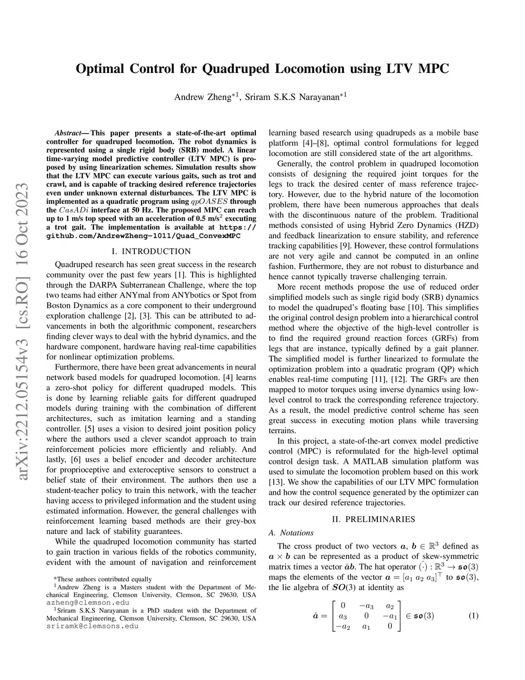 Optimal Control for Quadruped Locomotion using LTV MPC