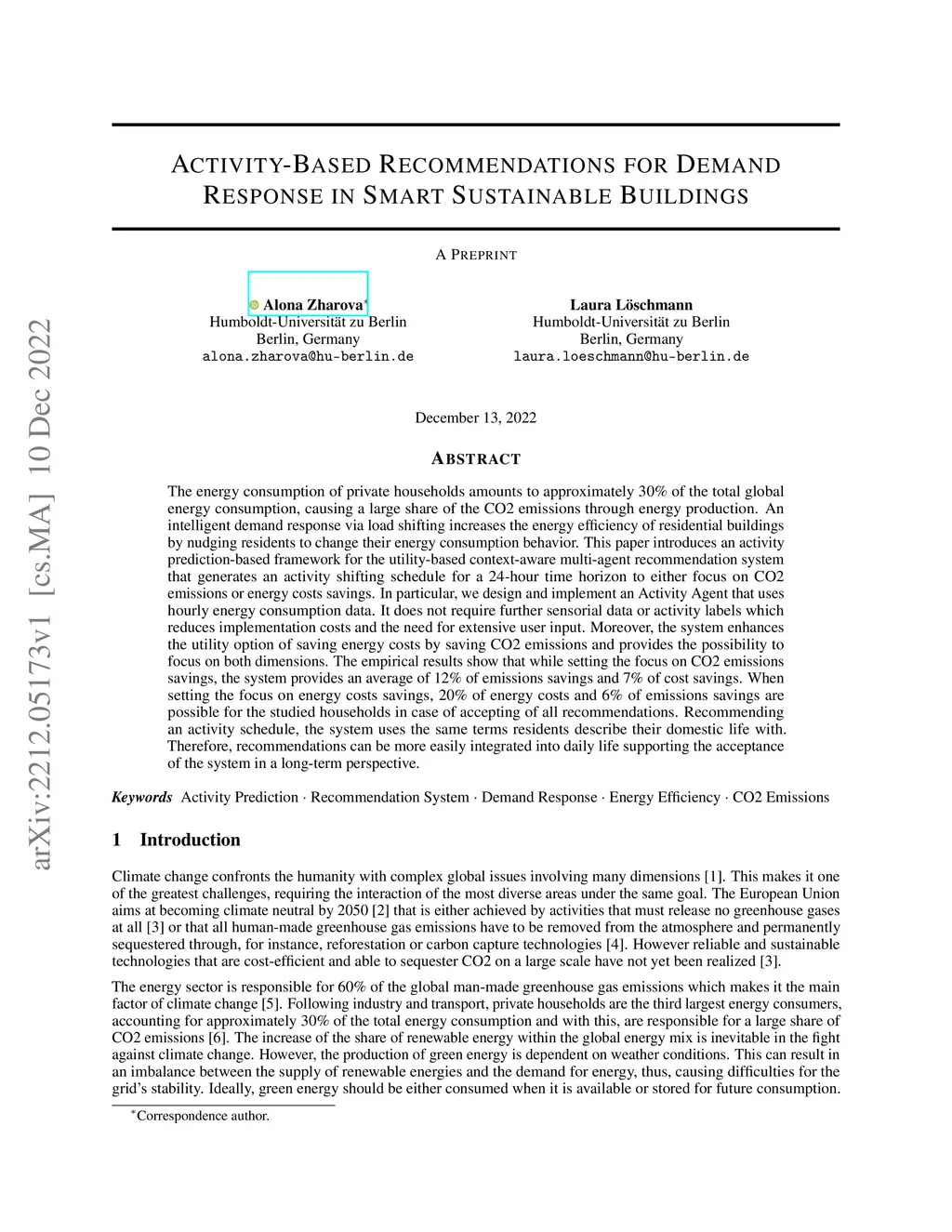 Activity-Based Recommendations for Demand Response in Smart Sustainable