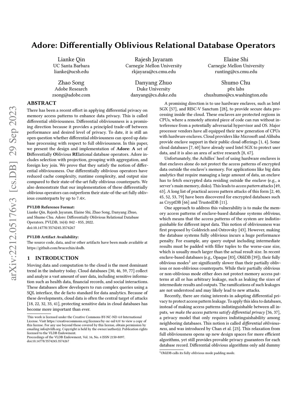 Adore: Differentially Oblivious Relational Database Operators