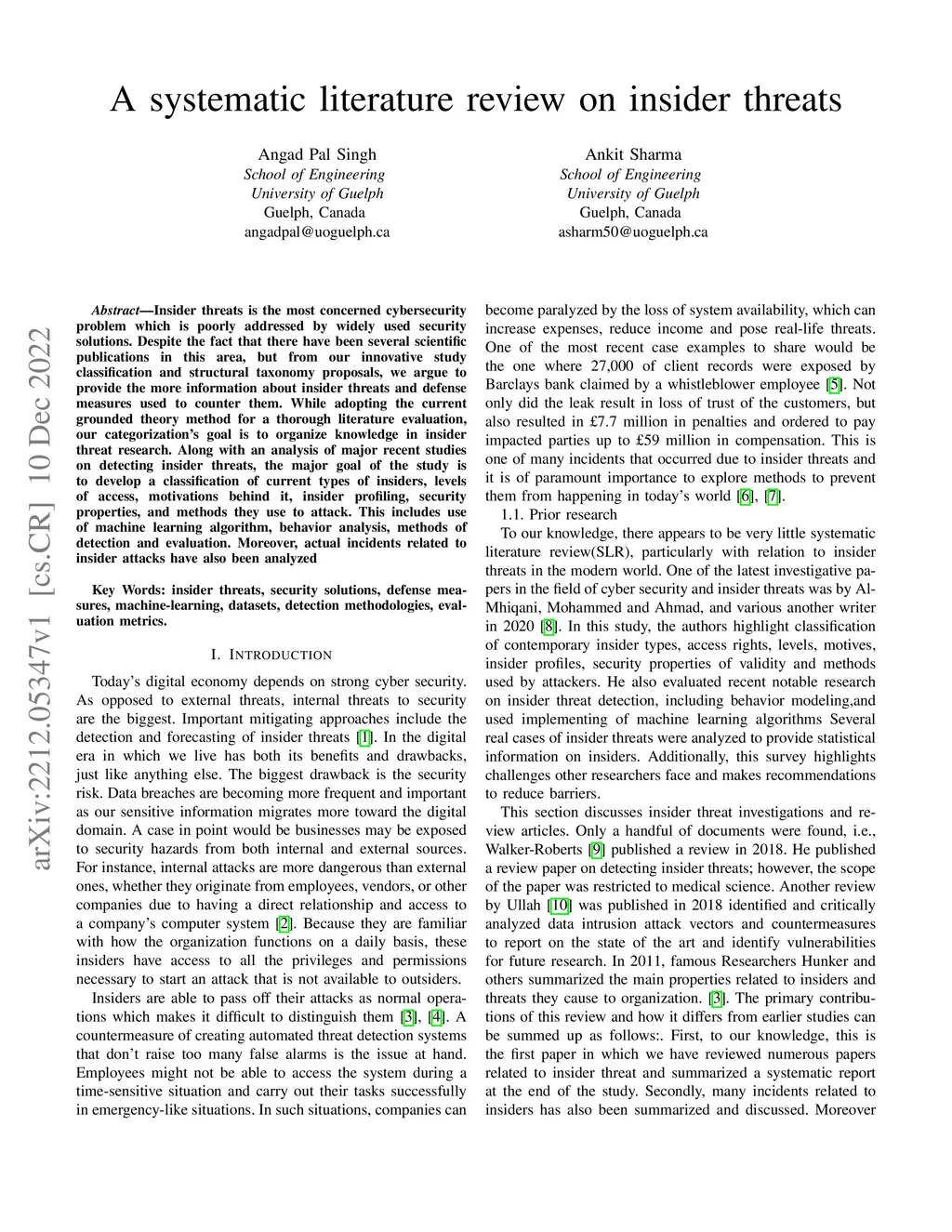 Insider threats is the most concerned cybersecurity problem which is poorly addressed by widely used security solutions. Despite the fact that there have been several scientific publications in this area, but from our innovative study classification and structural taxonomy proposals, we argue to provide the more information about insider threats and defense measures used to counter them. While adopting the current grounded theory method for a thorough literature evaluation, our categorization's goal is to organize knowledge in insider threat research. Along with an analysis of major recent studies on detecting insider threats, the major goal of the study is to develop a classification of current types of insiders, levels of access, motivations behind it, insider profiling, security properties, and methods they use to attack. This includes use of machine learning algorithm, behavior analysis, methods of detection and evaluation. Moreover, actual incidents related to insider attacks have also been analyzed.