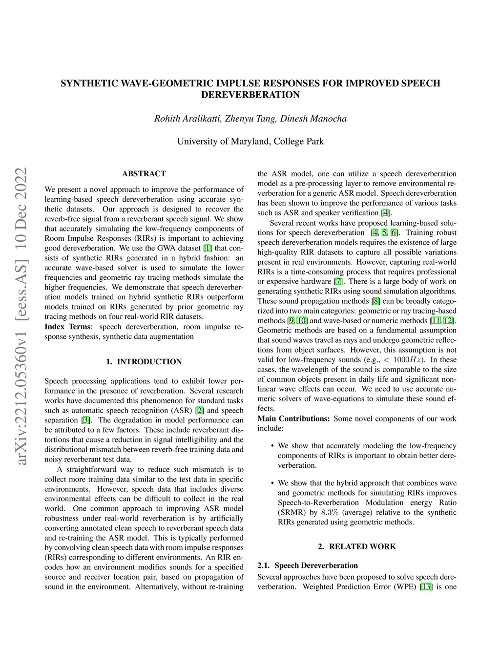 Synthetic Wave-Geometric Impulse Responses for Improved Speech