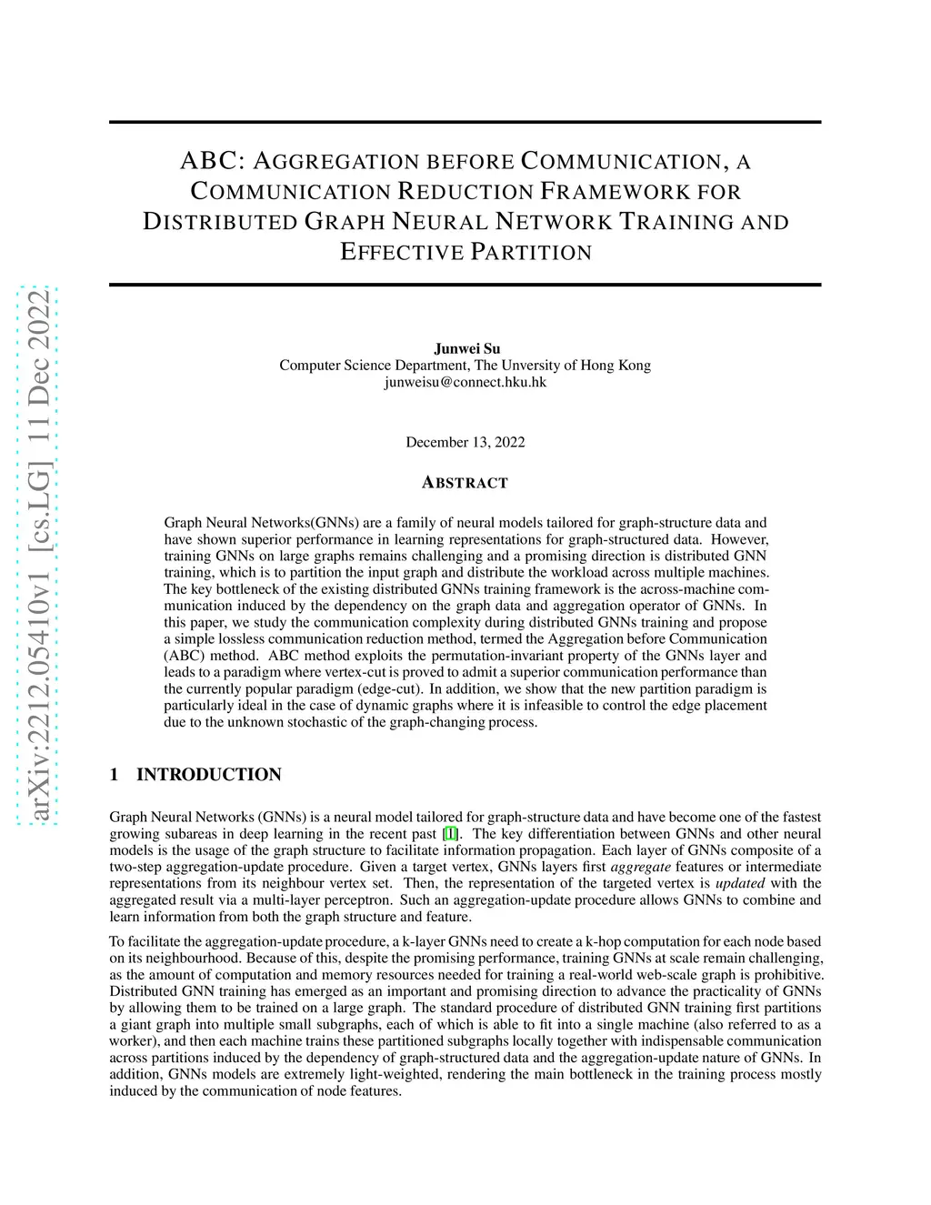 Graph Neural Networks(GNNs) are a family of neural models tailored for graph-structure data and have shown superior performance in learning representations for graph-structured data. However, training GNNs on large graphs remains challenging and a promising direction is distributed GNN training, which is to partition the input graph and distribute the workload across multiple machines. The key bottleneck of the existing distributed GNNs training framework is the across-machine communication induced by the dependency on the graph data and aggregation operator of GNNs. In this paper, we study the communication complexity during distributed GNNs training and propose a simple lossless communication reduction method, termed the Aggregation before Communication (ABC) method. ABC method exploits the permutation-invariant property of the GNNs layer and leads to a paradigm where vertex-cut is proved to admit a superior communication performance than the currently popular paradigm (edge-cut). In addition, we show that the new partition paradigm is particularly ideal in the case of dynamic graphs where it is infeasible to control the edge placement due to the unknown stochastic of the graph-changing process.